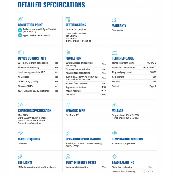 Teltonika Stacje ładowania 16A, faza 3, 11kW, 5m