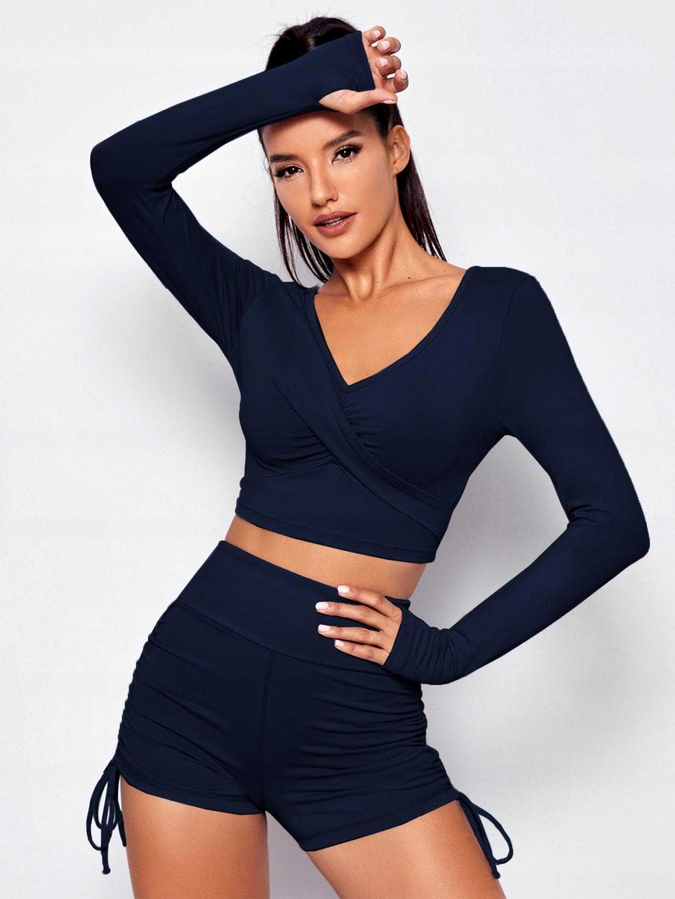 Темно -синій два -набір верхніх коротких шортів встановлений Shein 38