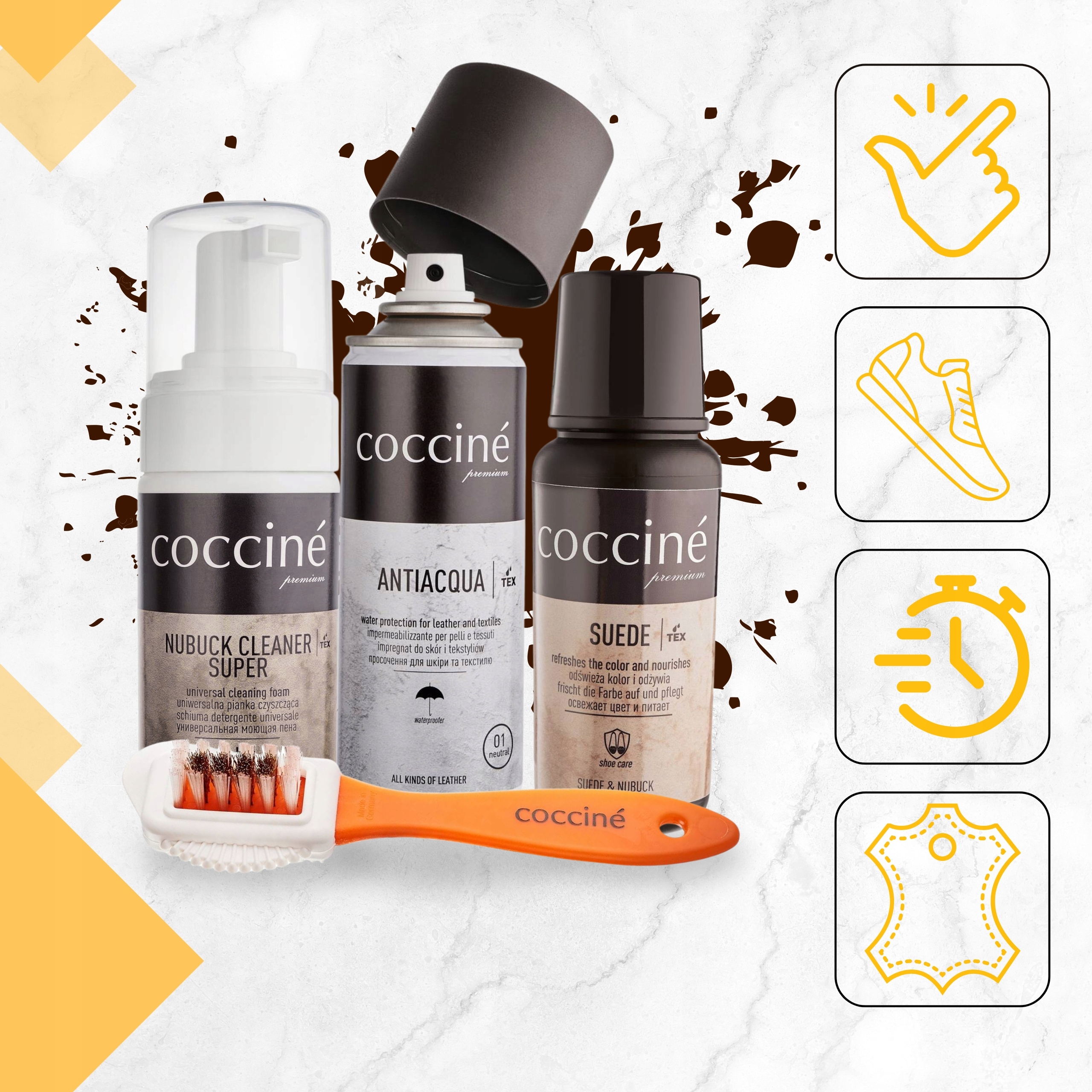 Найважливіші переваги двосторонньої щітки Coccine для чищення замші та нубуку: