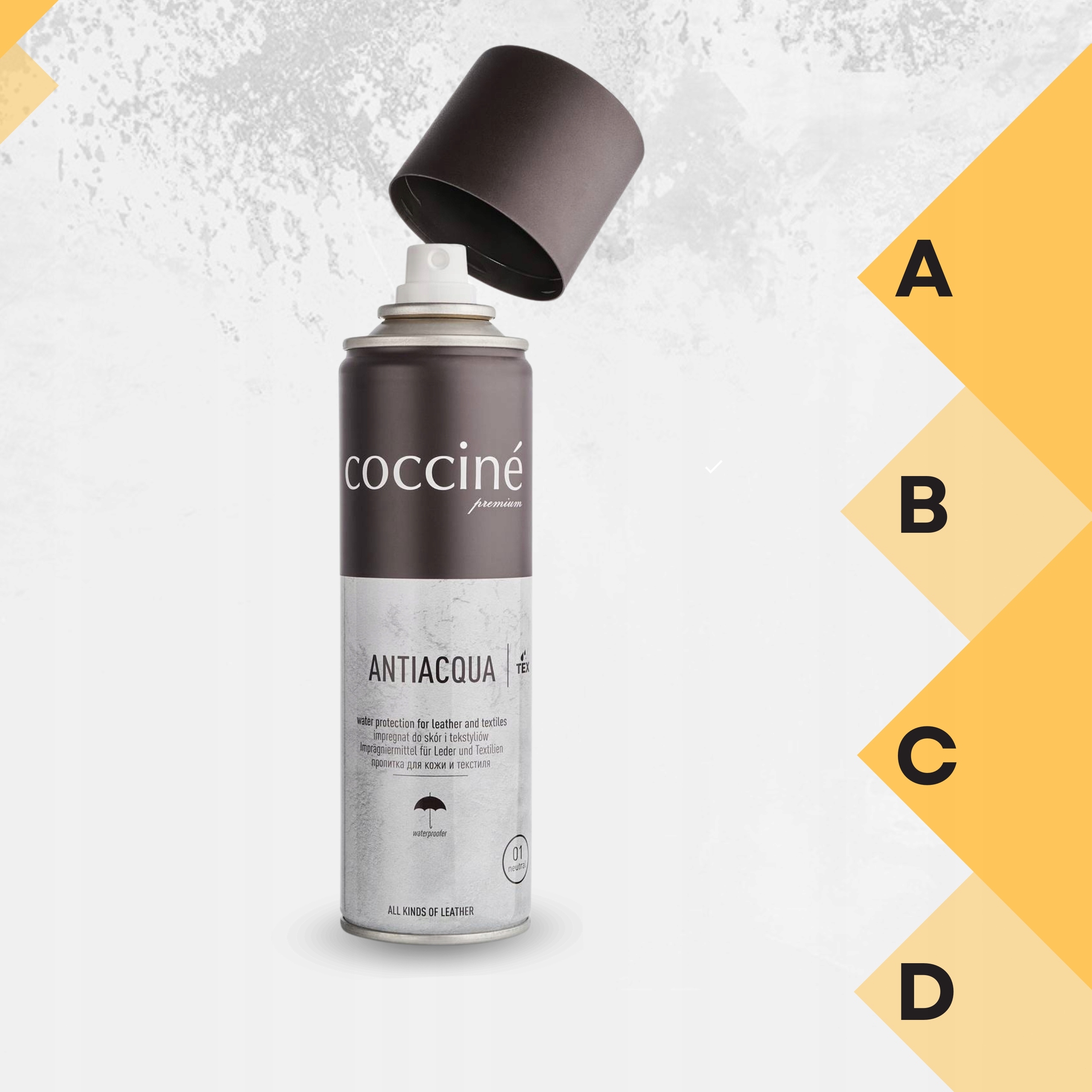 D. Універсальність і зручність застосування - ідеально підходить для взуття зі шкіри, замші, нубуку і текстилю; легка формула спрею сприяє рівномірному розподілу.