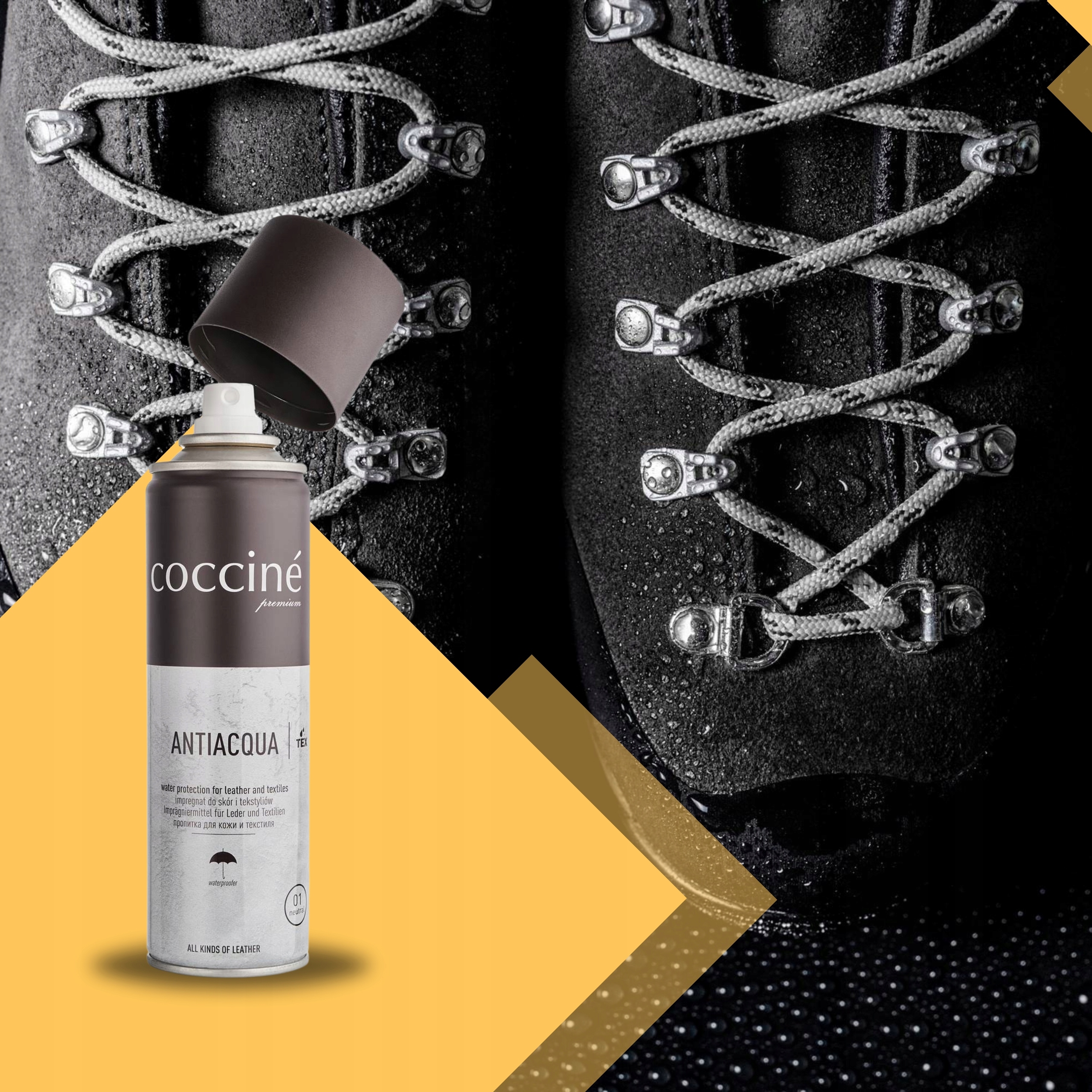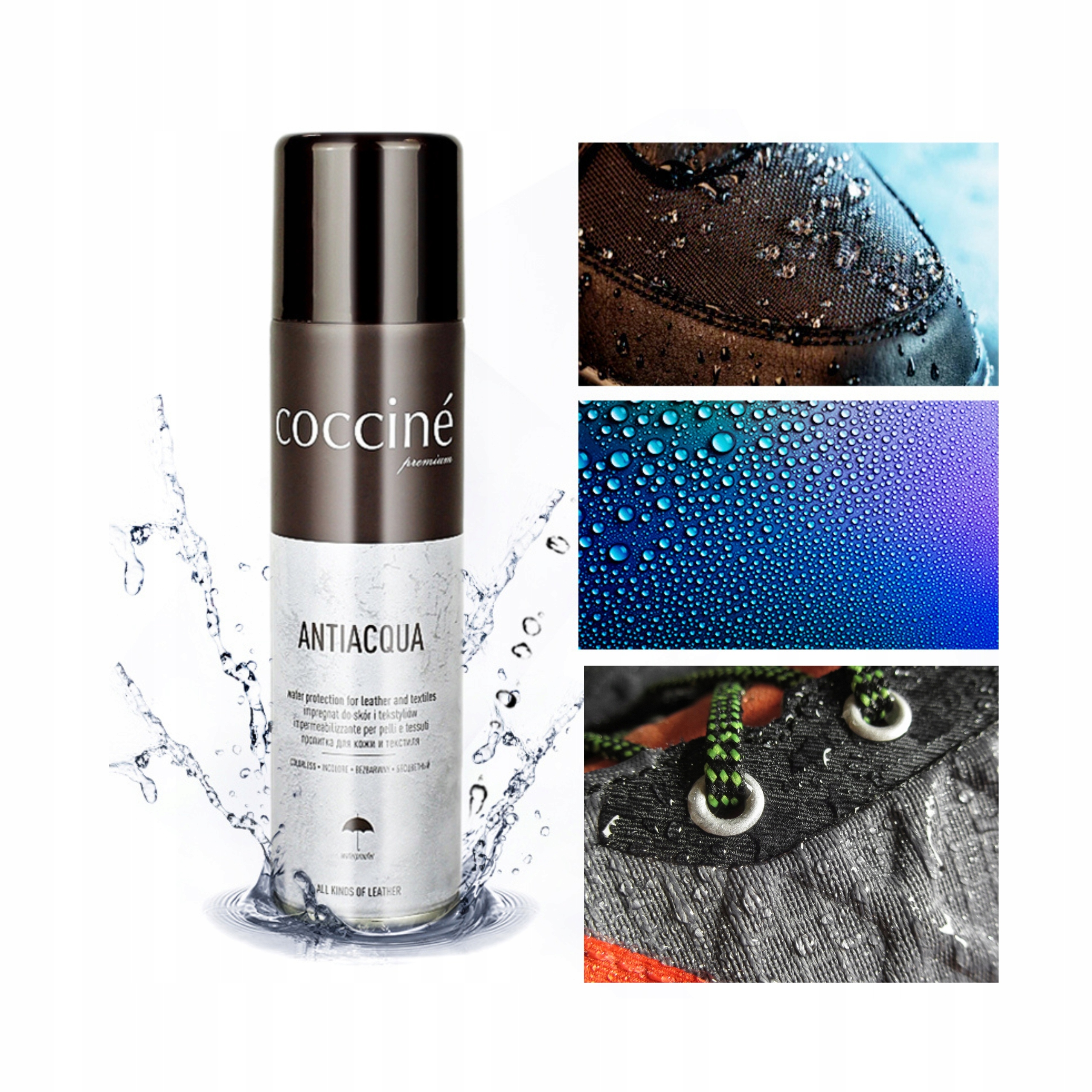 Спрей Coccine Antiacqua - надійне просочення для захисту взуття та аксесуарів зі шкіри, замші, нубуку та тканин. Забезпечте своєму взуттю ефективний бар’єр від вологи, подаруйте собі комфорт і впевненість за будь-яких погодних умов. Обирайте перевірену якість бренду Coccine!