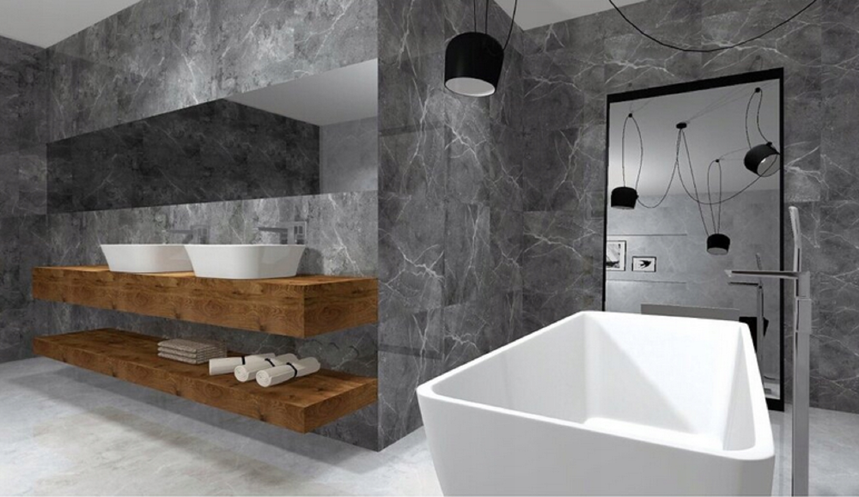 ТЕМНО-СІРА МАРМУРНА ПІДЛОГА НАСТІННА ПЛИТКА 60X60 ГЛЯНЦЕВА ВАННА