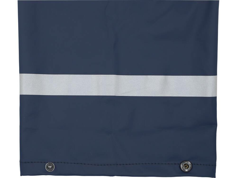 Дощозахисний комплект із 2 предметів від Yato з чотирма світловідбиваючими лініями шириною 25 мм, пришитими на штанинах і рукавах. Куртка з трьома кишенями і регульованим капюшоном, штани з еластичним поясом і розрізами з боків, через які можна дістатися до кишень брюк.