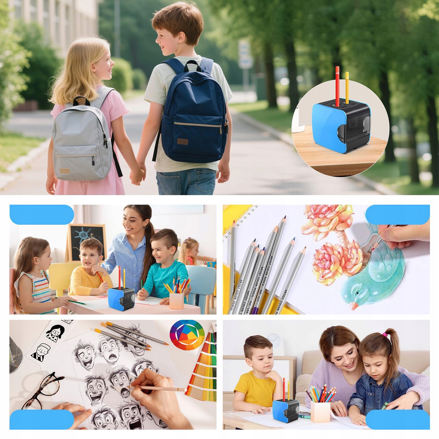 🎨 Безпека для дітей:точилка запускається автоматично, коли ви натискаєте олівець. Він перестане працювати, коли ви закінчите заточувати та зменшите тиск (на олівець), а також не працюватиме, якщо кришку знято або встановлено неправильно, що забезпечує безпеку дітей під час самостійного використання.