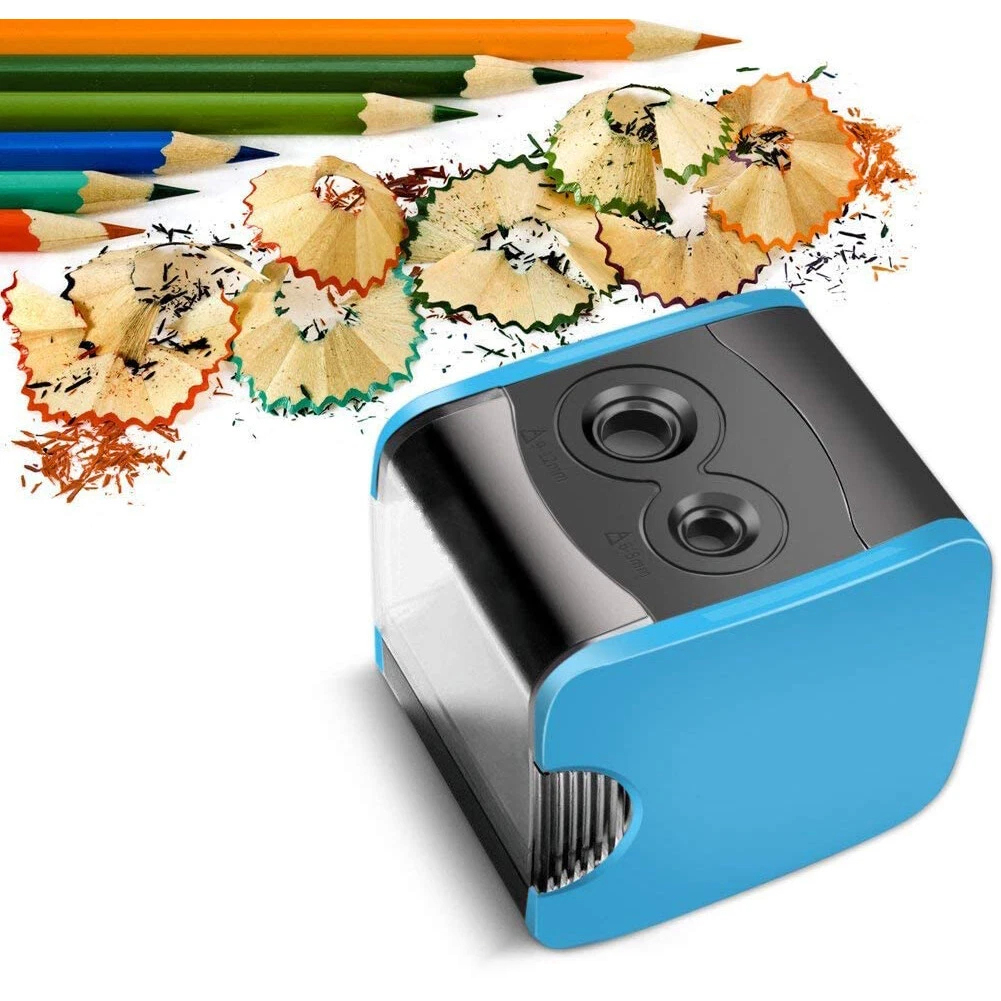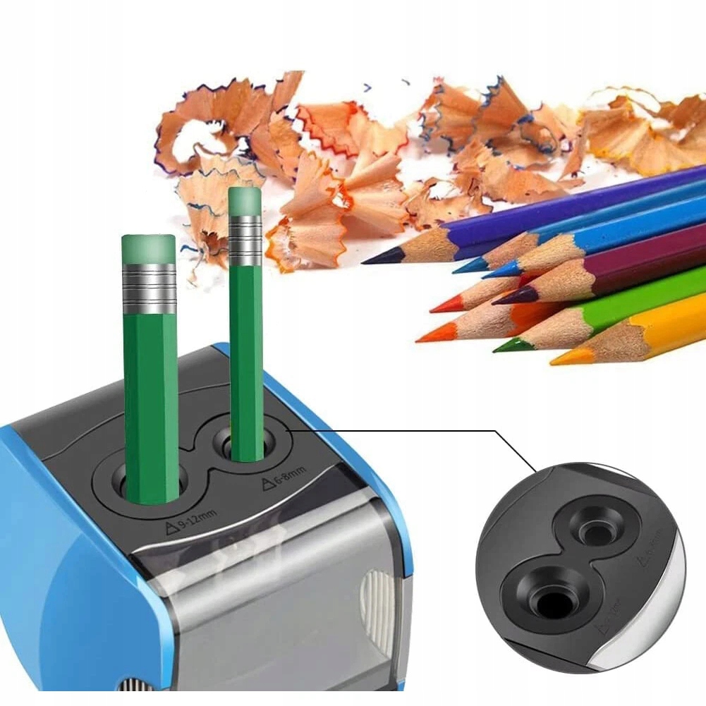 - Подвійна точилка: наша електрична точилка має 2 розміри (діаметр 6-8 мм і діаметр 9-12 мм), які підходять для різних типів олівців, таких як товсті кольорові олівці та інші великі олівці, а також стандартні розміри тонких олівців тощо.До комплекту входять 4 змінні леза. З двома лезами, уже встановленими в машину, є шість головок, тому вам не потрібно купувати нові леза.