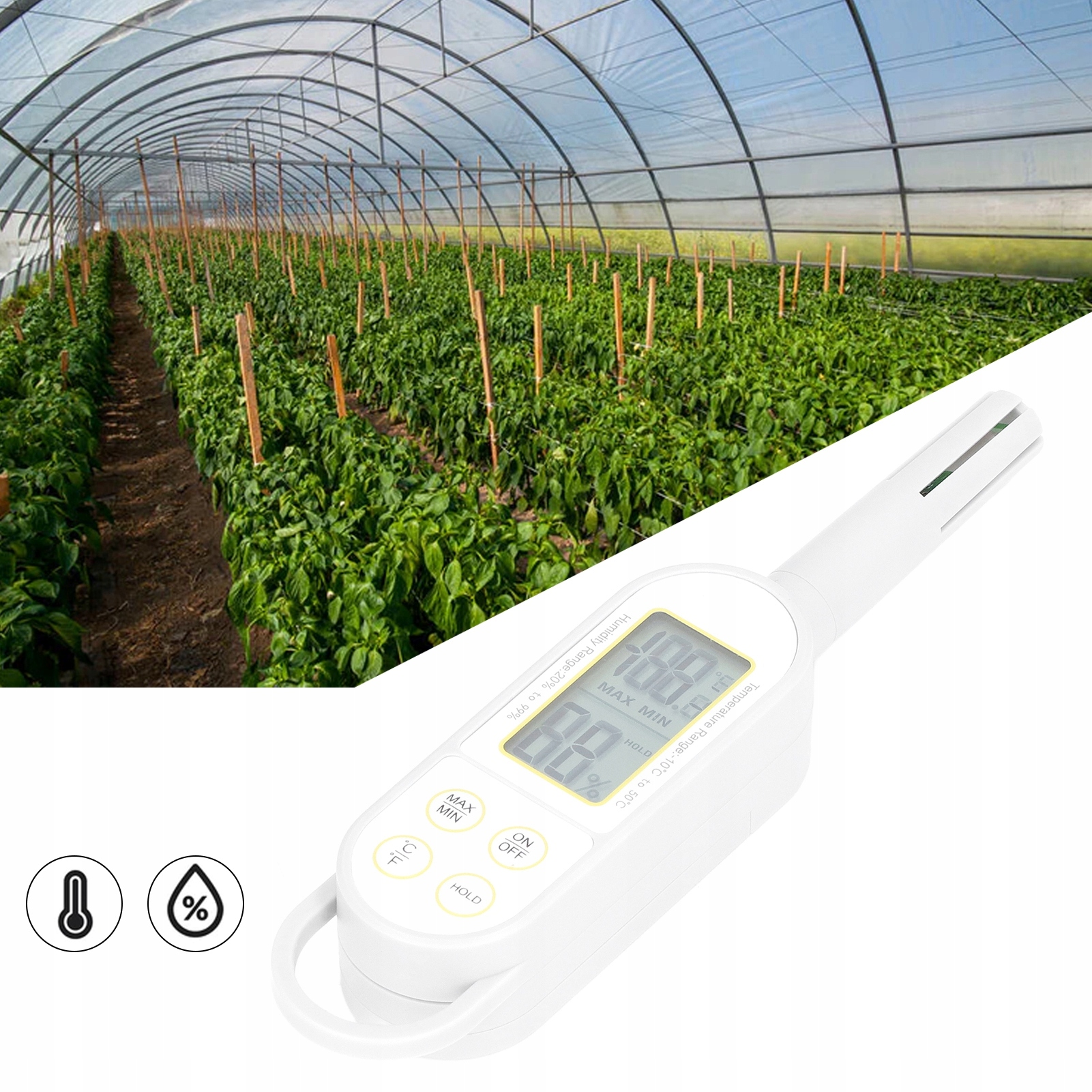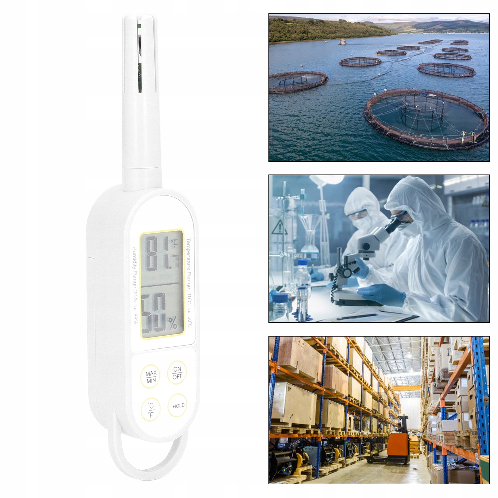 Додаток: Цей вручний цифровий цифровий Лічильник температури та вологості можна широко використовувати в будинку, квартирі, промисловості, лабораторії, теплиці, складі та аквакультурній фермі.