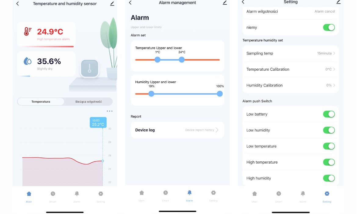 - Потужність сповіщень - інформація про низьку/високу температуру, вологість та низький рівень акумулятора