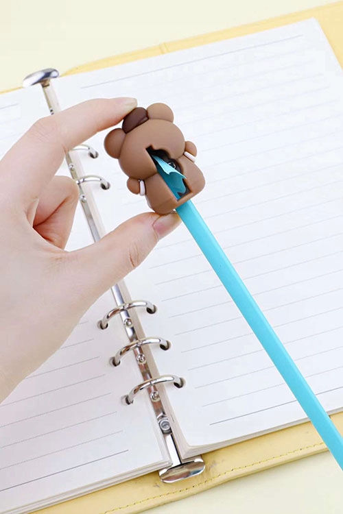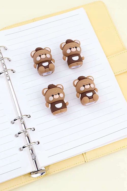 красиво упакована, силіконова, відмінна плюшева ведмедя -укладена підошва зі сталевим лезом. Призначений для заточення олівців та олівців. Прекрасно зроблено, з увагою до деталей, завдяки додатковій, смачній упаковці ідеально підходить для шкільного подарунка. Температура: 4,0*3,0 см