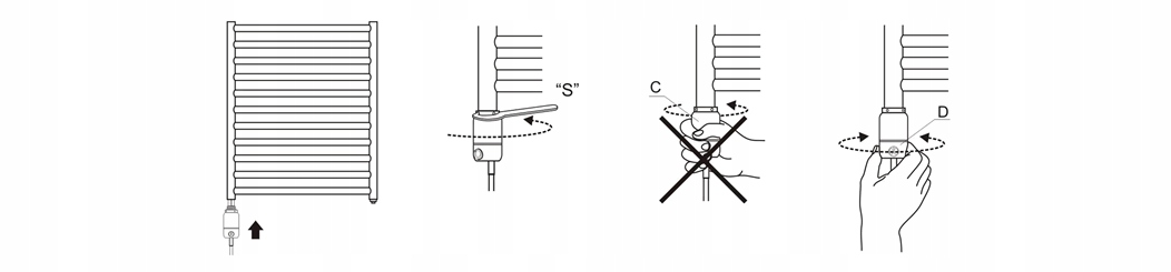 - Обережно затягніть пристрій так, щоб гумова прокладка захищала радіатор від витоку води.: Після того, як нагрівач прикрутили до радіатора, поверніть рухому частину (B) так, щоб ручка потенціометра була в положенні, зручному для регулювання температури.