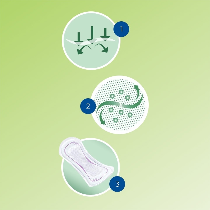 100% розсудливість забезпечується завдяки технології microPROTEX™ і системі мікрогранулок Fresh Odour. Завдяки цьому вони тонкі, але дуже добре вбирають, тому вам не доведеться про це турбуватися. Водночас вони усувають неприємні запахи, забезпечуючи відчуття свіжості та сухості щодня.