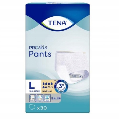 - TENA Pants ProSkin – це поглинаючі трусики, які у разі витоку сечі вбирають сечу в поглинаючу вставку та утримують її внутрішня частина завдяки спеціальному суперабсорбенту. Водночас вони запобігають виходу неприємних запахів.