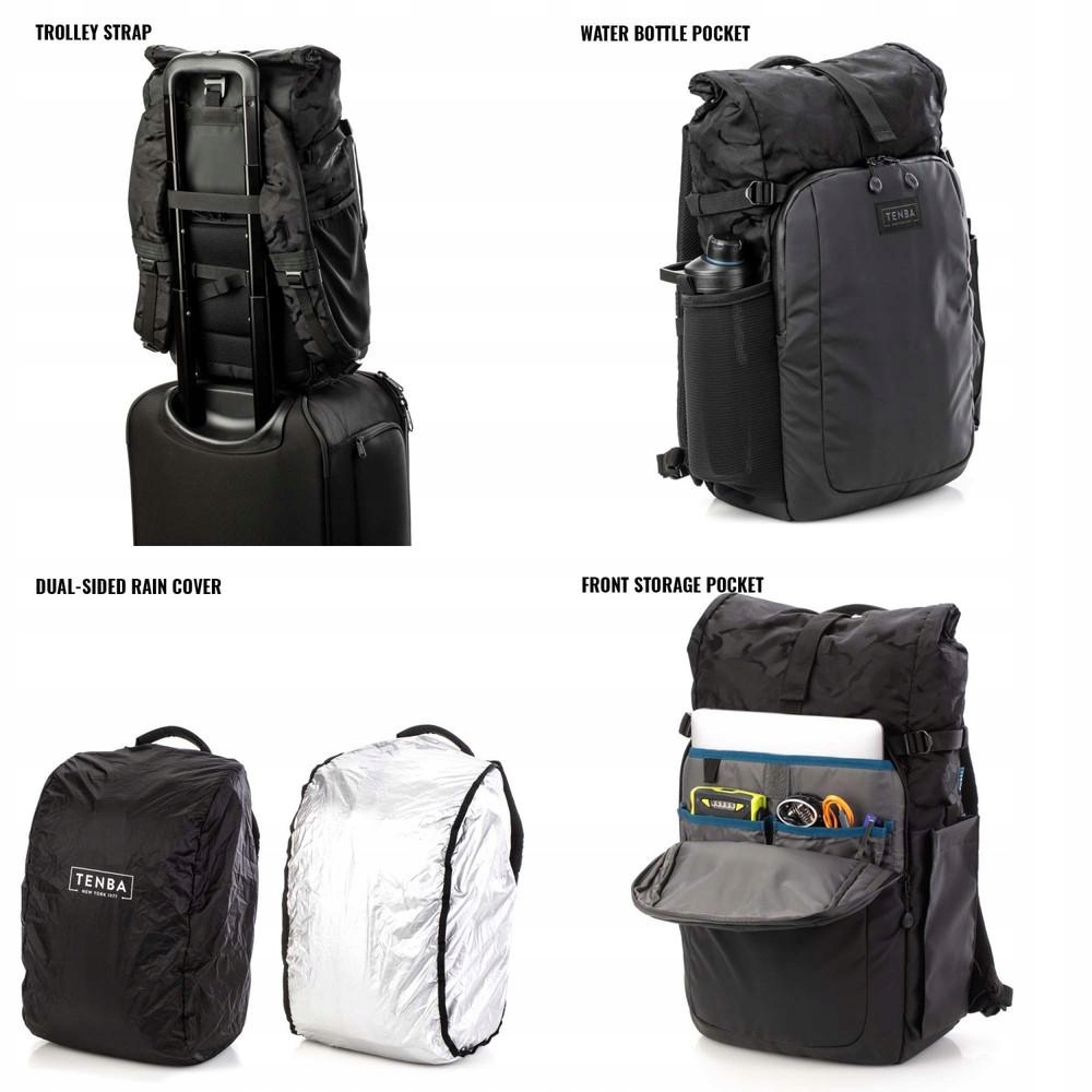 рюкзаки Фултона поєднують позачасовий, старовинний стиль із сучасним комфортом, функціональністю і, перш за все, ідеально захищають фотографічне обладнання. Їх м'який, легкий дизайн гармонійно вписується в кожне оточення, і в той же час має повний спектр професійних функцій, таких як безпечний доступ до камери на задній частині, підтримка штатива/монопода, підкладеної кишені для планшета та широке відкриття типу рулону. 14-літровий рюкзак утримує беззеркальну камеру або дзеркальну камеру з 3-4 лінзами (максимум 70-200 2,8), плюс ноутбук до 14 дюймів (35 см). У ньому також розміщуються дрон DJI Mavic та інші компактні безпілотники. А у верхній частині рулонів є багато місця для їжі, легкої куртки та інших особистих речей. Специфікація: • Вага: 0,91 кг • Зовнішні розміри: 28x44x17 см • Внутрішні розміри: 23x25x13 см • Камера ноутбука: 22x33x2 см