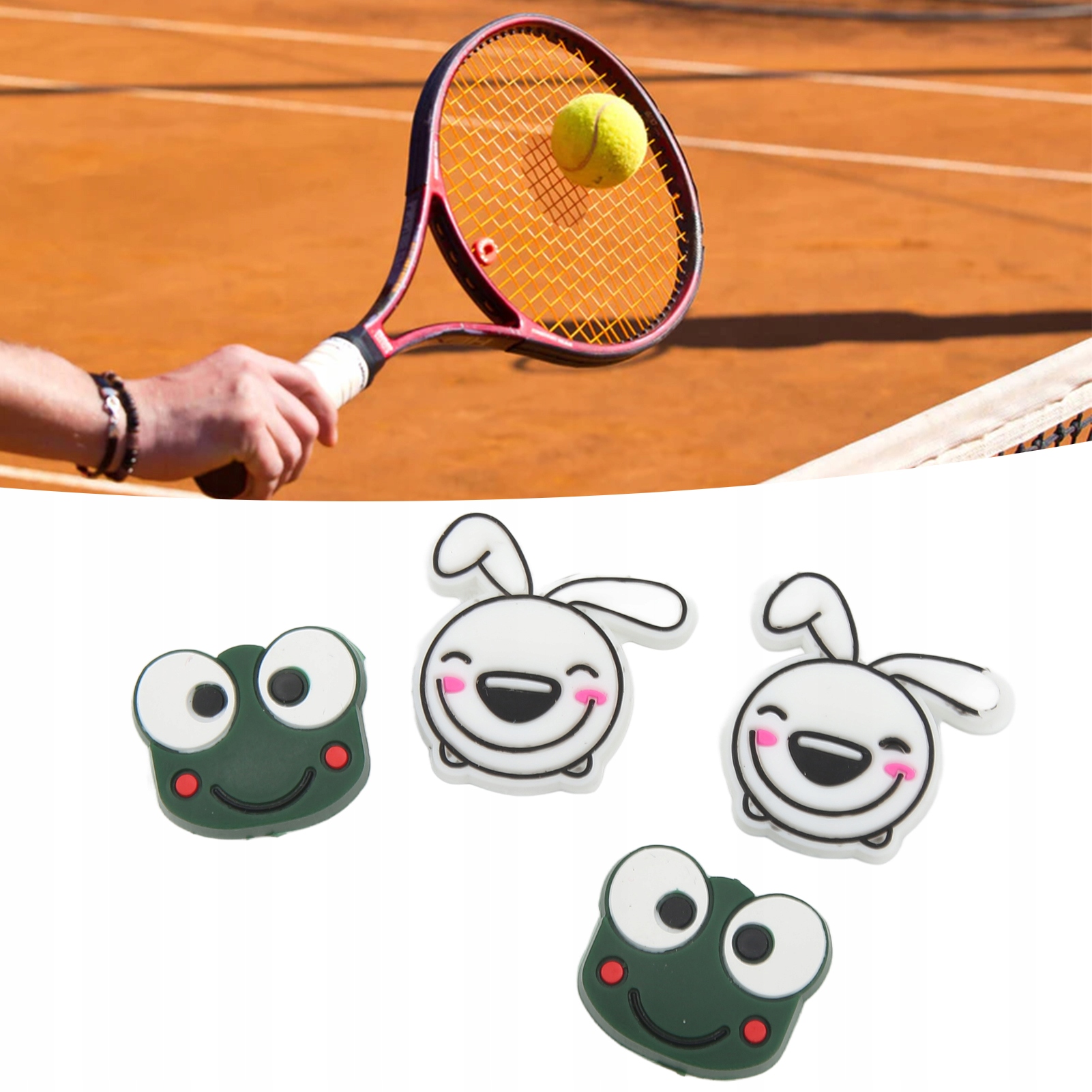 4 PCS Тенісна ракетка Вібрація форми мультфільмів з тенісним поглиначами з тенісу Теніса 2,2 см/0,9 дюйма кролика 2,8 см/1,1in