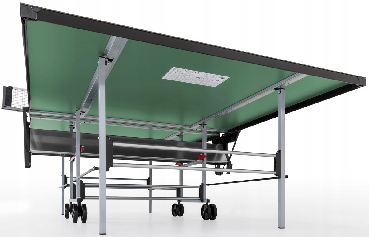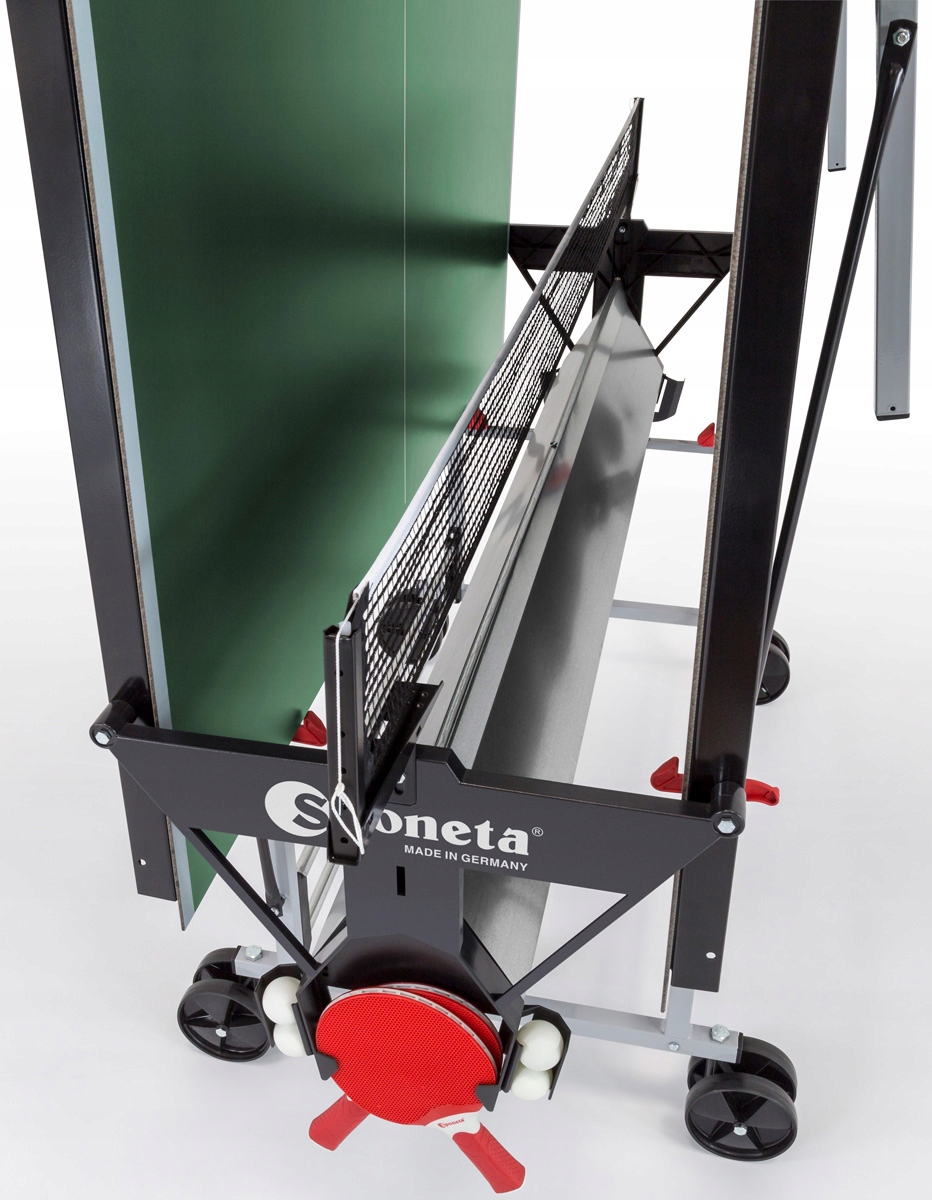 Стіл для настільного тенісуSPONETA S3-46e це стіл, виготовлений з високоякісних матеріалів, поверхня якого порівнянна зі столами, які використовуються на світових турнірах. Його можна розгортати на дві окремі половини, що дозволяє грати в одиночному режимі. Збірку та розбирання може легко виконати дитина, а завдяки подвійним запобіжникам це гарантує безпечне та надійне збирання. Практична система бігу з чотирма гумовими колесами. Ідеально підходить для школи, гуртка та бази відпочинку. Стіл для настільного тенісу призначений для використання на вулиці.