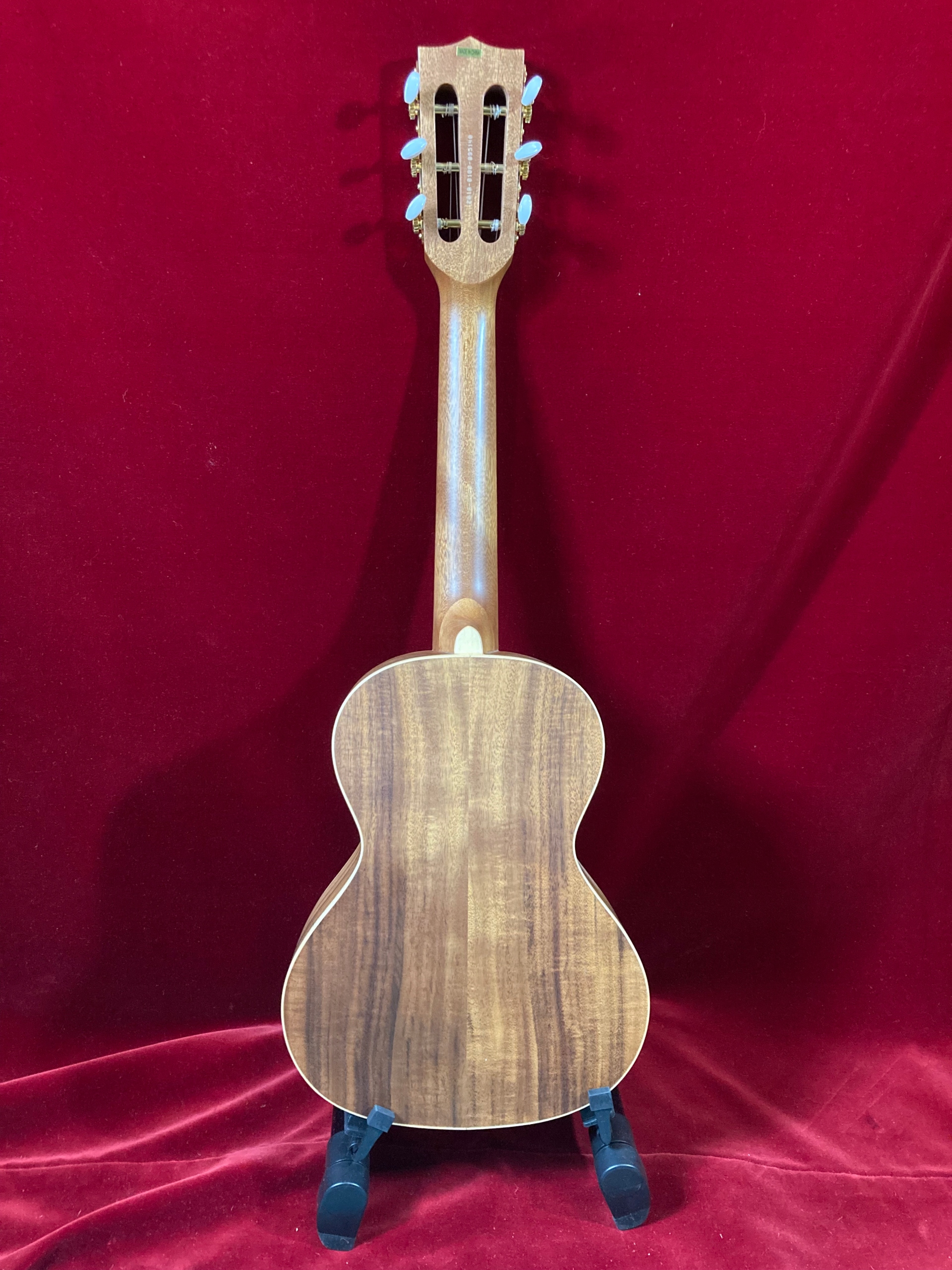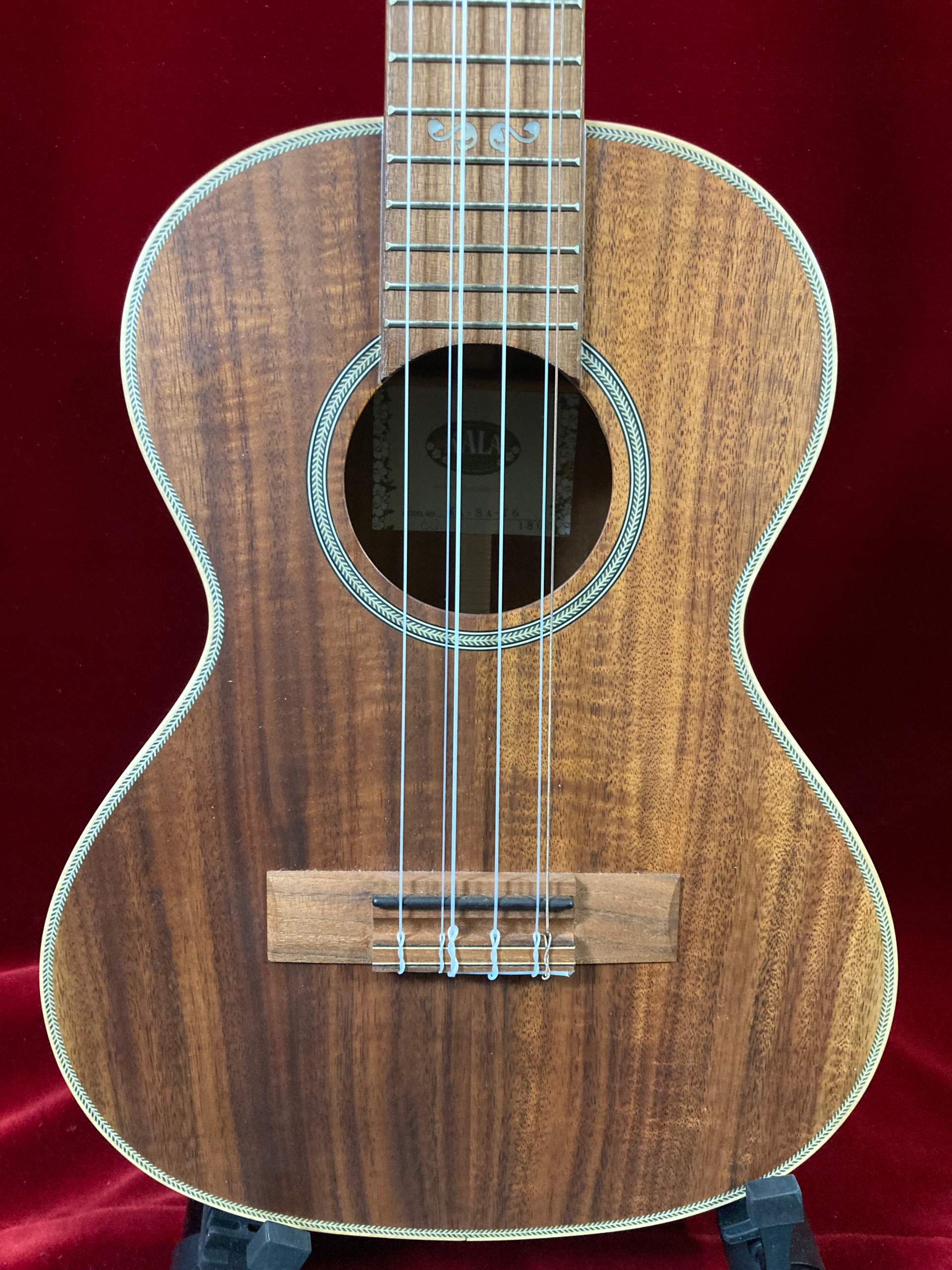 шість -масштабний тенор укулеле Кала в надмірному стані. Він має ознаки споживання у вигляді подряпин.