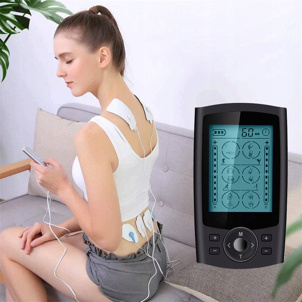 Завдяки36 режимам стимуляції пристрій TENS допомагає полегшити м’язовий біль у плечах, попереку, спині, шиї, верхніх кінцівках (руках) і нижніх кінцівках (ногах), спричинений фізичними вправами або звичайними домашніми справами. Електричні масажери також можна використовувати для стимуляції здорових м’язів, щоб покращити та підвищити продуктивність м’язів.