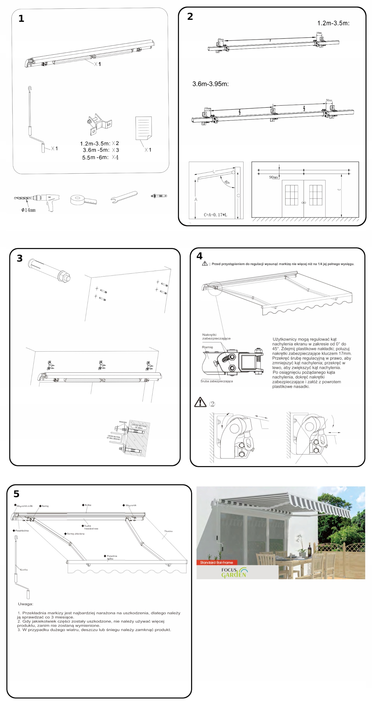 Навіс FocusGarden є одним із найкращих навісів для тераси на польському ринку. Висувний, дуже міцний. Дизайн і використання прості, а завдяки широкому асортименту тканин і розмірів, а також доступній ціні вони конкурентоспроможні серед інших брендів. Стандартний маркіза FocusGarden управляється за допомогою коромисла. Наші маркізи забезпечують захист від шкідливого ультрафіолетового випромінювання, тому є відмінним вибором для людей, які піклуються про свою безпеку та здоров'я. Вони також мають регульовану довжину, тому ви можете налаштувати її відповідно до своїх потреб. Якщо ви шукаєте унікальний спосіб захисту від сонця та дощу, цей тент – ідеальний вибір!