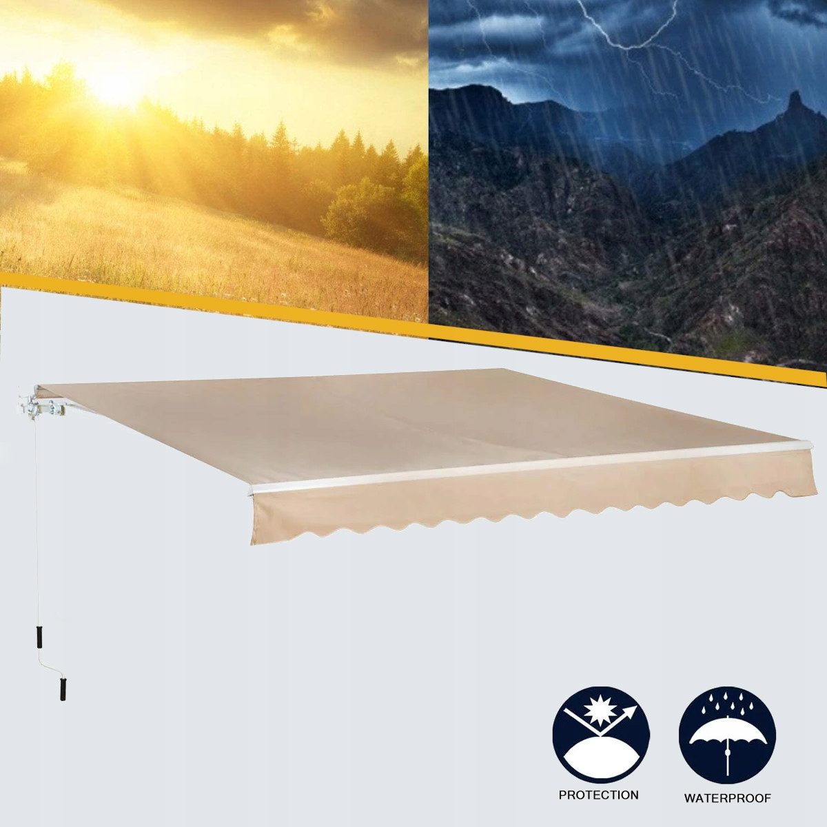 ДО КОМПЛЕКТІВ: Тент, штанга для згортання та розмотування тенту, кронштейни для кріплення, інструкція з експлуатації та монтажу:)