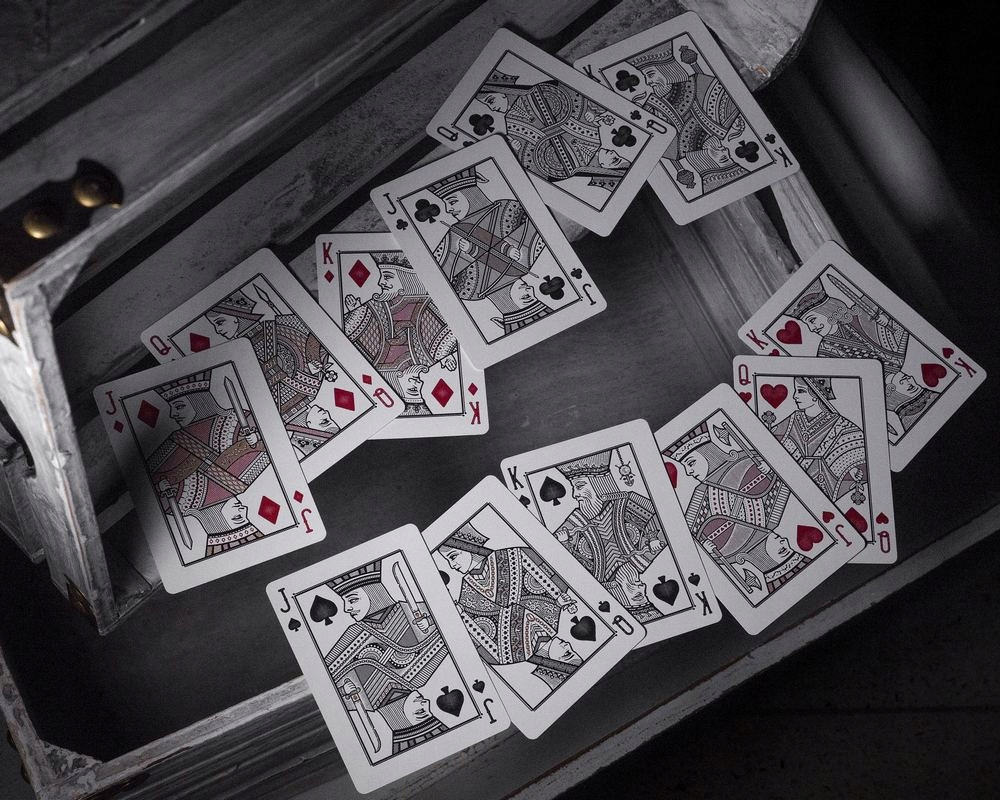 4 Картки високої якості були розроблені з нуля з повністю не стандартним аверсовим та зворотним. Кожна карта контрабанди була розроблена з нуля - тузи, жарти та картки суду демонструють увагу до деталей, які ніколи раніше не були досягнуті. Розроблені у Великобританії Джо Уайт, вони надихнули таємні асоціації, теорії змови та все невідомо.