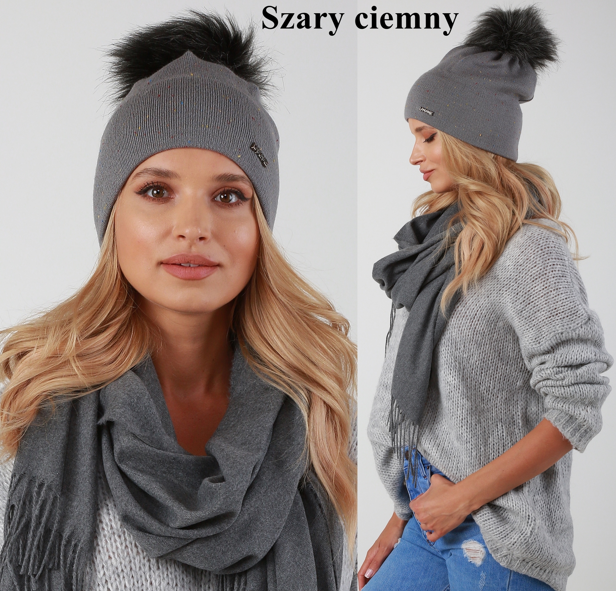 Гладка шапка з ніжними плямами і красивим хутряним помпоном, який завжди буде модним. Модель підходить під будь-який стиль, як елегантний, так і спортивний. Класичний стиль - два гладких шару. Шапка має найякіснішу обробку та найкращий трикотаж. Два шари дозволять використовувати його з ранньої осені до холодної зими. Тепла, зручна модель. Найвища польська якість!