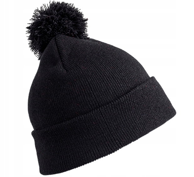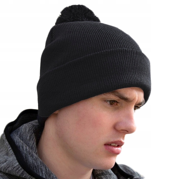 Двошарова чорна шапка з помпоном