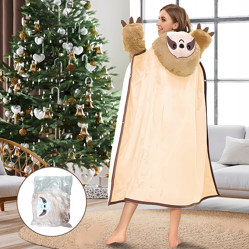 Ковдра застібається на ґудзики, а капюшон натхненний твариною.