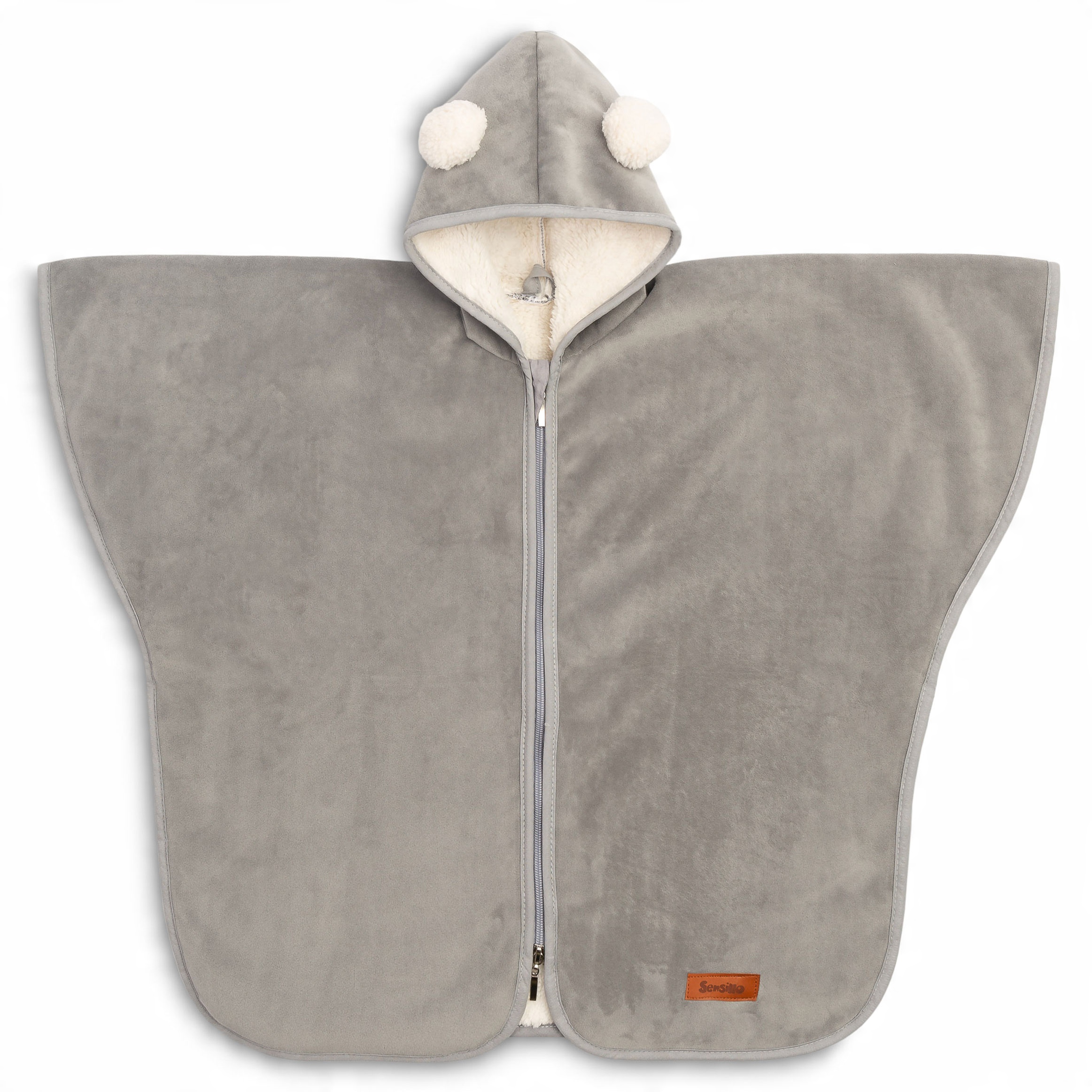 Пончо оснащено двосторонньою блискавкою із захистом від защемлення (у верхній частині пончо) та магнітами під руки, щоб ви могли швидко одягнути пончо та зняти його з дитини.