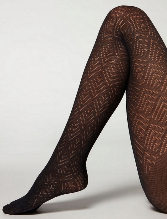 Теплі колготки CALZEDONIA MODAL CASHMERE з геометричним візерунком, чорний розмір. L/4