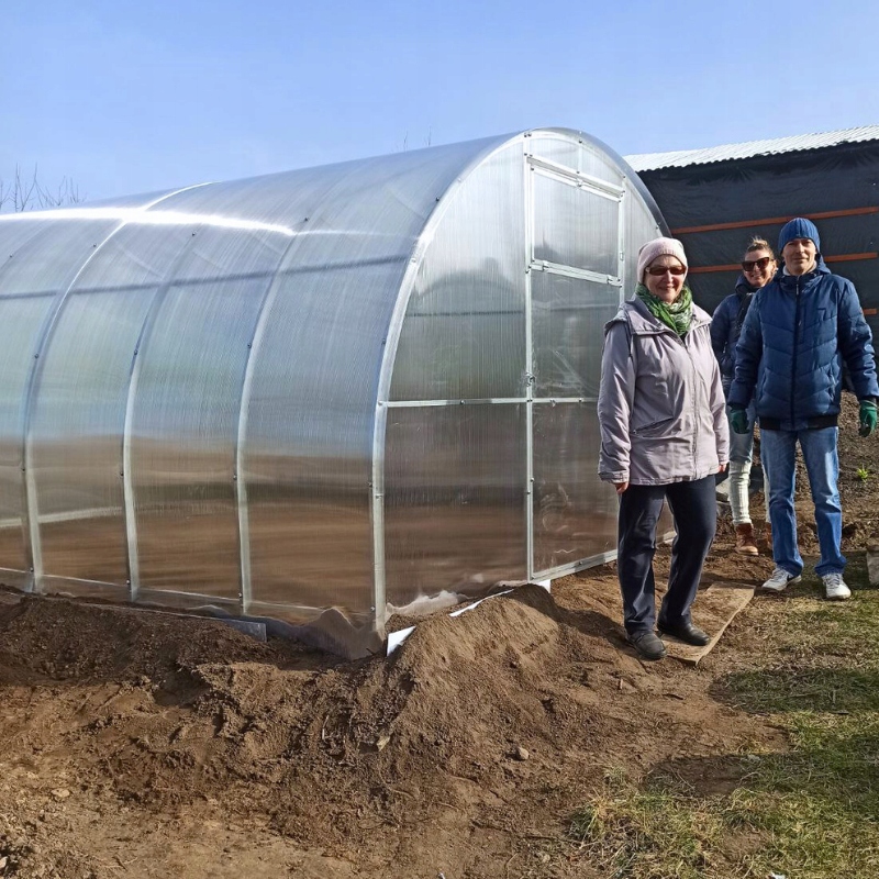 До пропозиції входить теплиця в стандартній комплектації (металоконструкція, полікарбонат, монтажний комплект). Додатково рекомендуємо комплект полікарбонатного захисту для кожної теплиці (містить: П-подібні торцеві профілі, паропроникну стрічку, ізоляційну стрічку та комплект для підв’язування рослин (для 4-метрової теплиці).