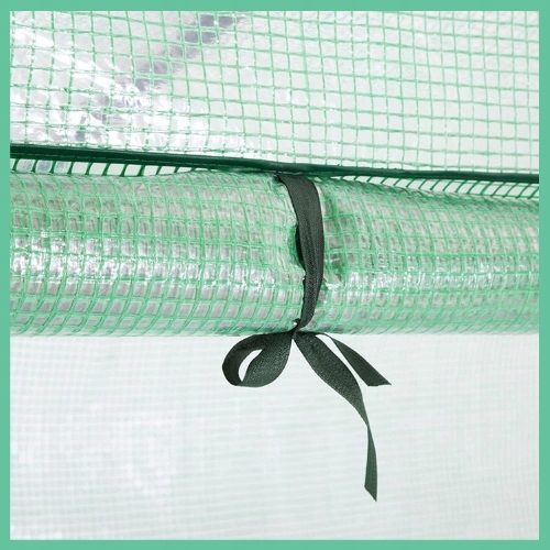 Дверцята теплиці закриваються на блискавку. Наявність замка дозволяє швидко і легко отримати доступ до внутрішньої частини теплиці.