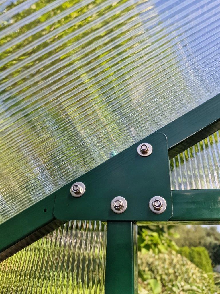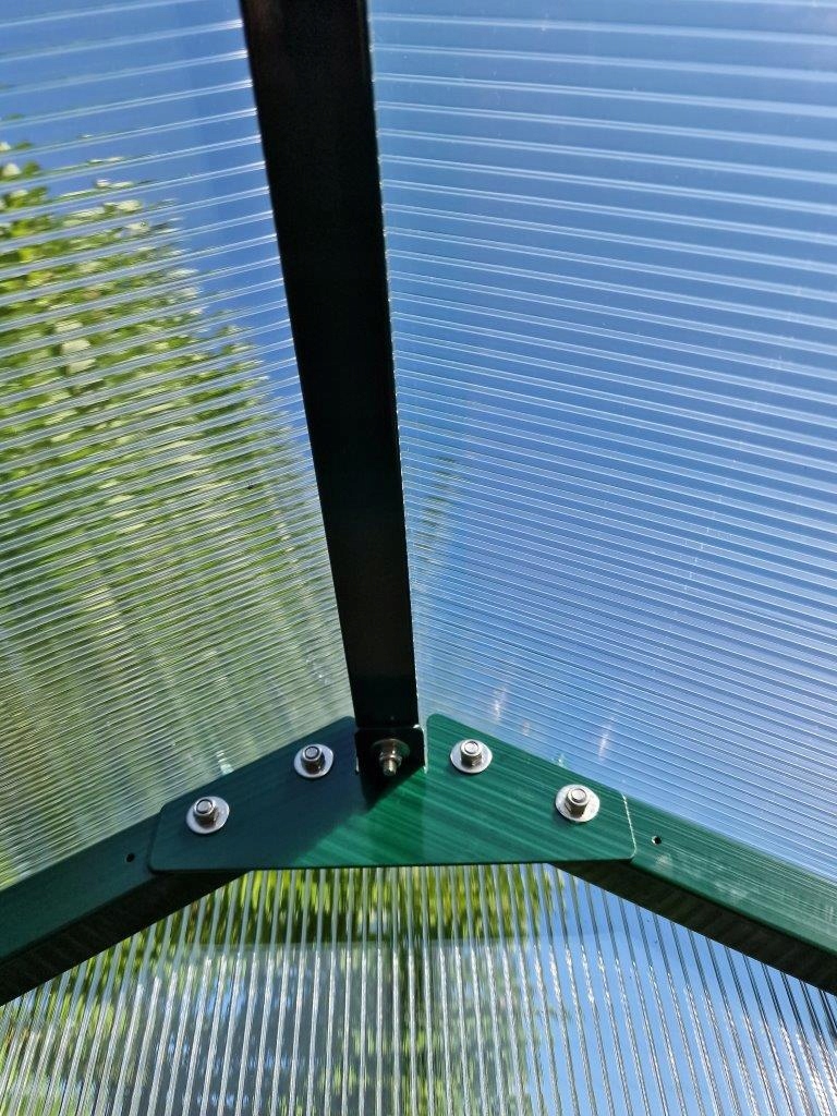 - усі полікарбонатні пластини вирізані та згинається під розміри теплиці, не потрібно вирізати/підключати елементи при складанні