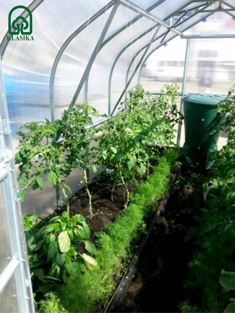 Особлива форма теплиці та висота каркаса 245 см ідеально підходять для вирощування високорослих рослин. А міцність конструкції СТАНДАРТ*Класика дозволить підв'язувати рослини (плетисті помідори, огірки) і підвішувати горщики і стелажі прямо до каркаса теплиці.