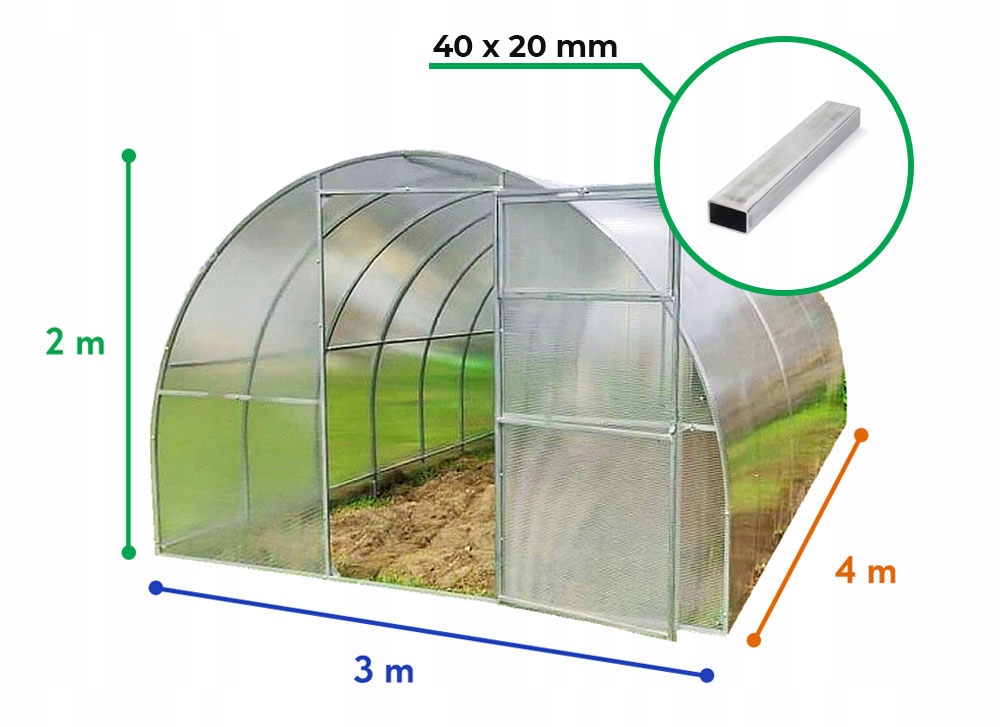 ТЕПЛИЦЯ САДОВА 3х4м ПОЛІКАРБОНАТ 6мм з Профілем 40х20мм ОЦИНКОВАНИЙ тунель 12м2