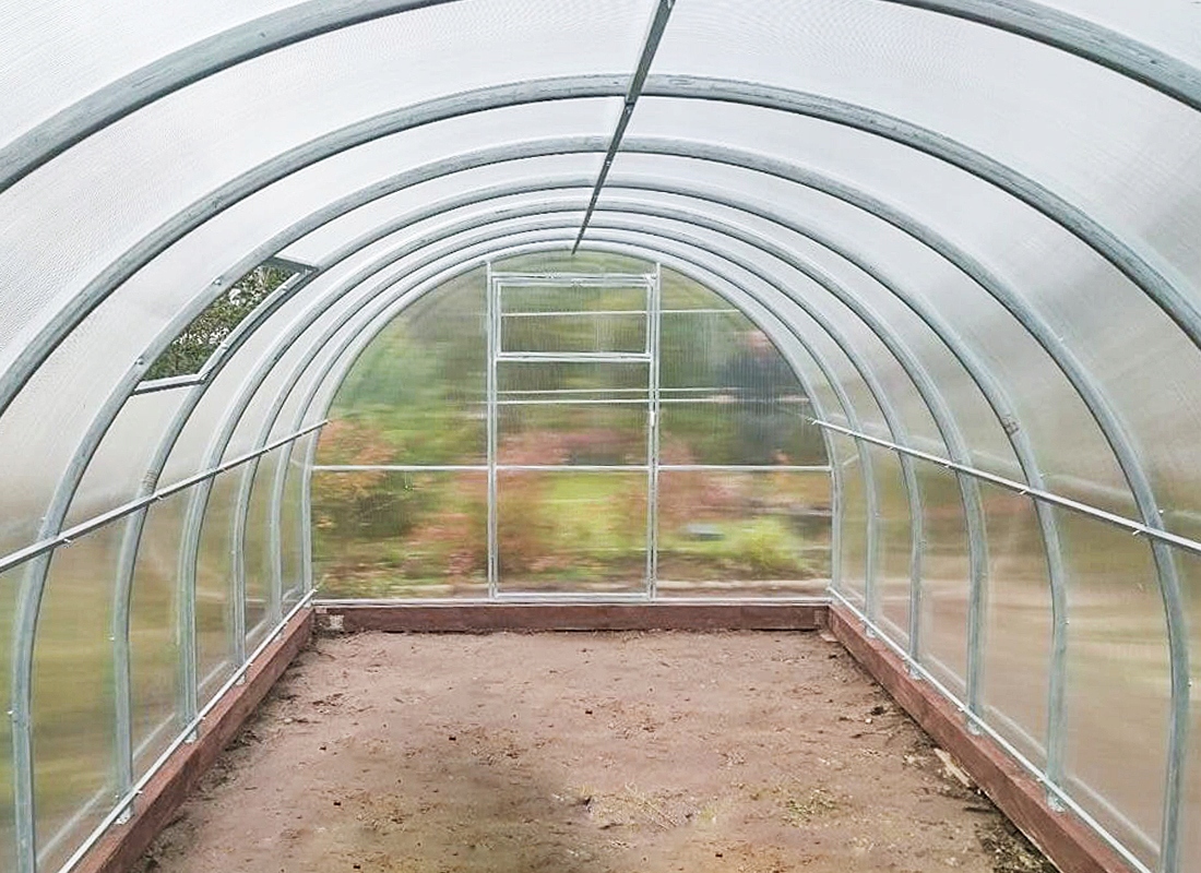 Теплиця виготовлена з міцного закритого сталевого оцинкованого профілю 40х20 мм з товщиною стінки 0,8 мм і покрита стільниковим полікарбонатом товщиною 6 мм