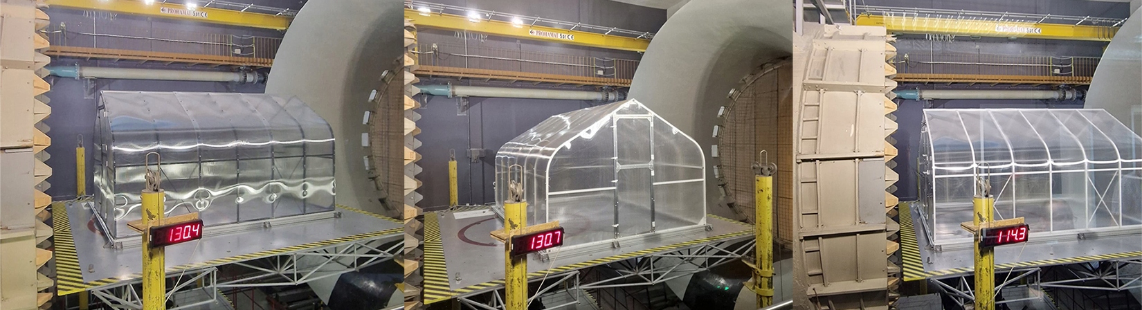 Всю модель розміром 250x400 см помістили в аеродинамічну трубу та навантажили вітром.