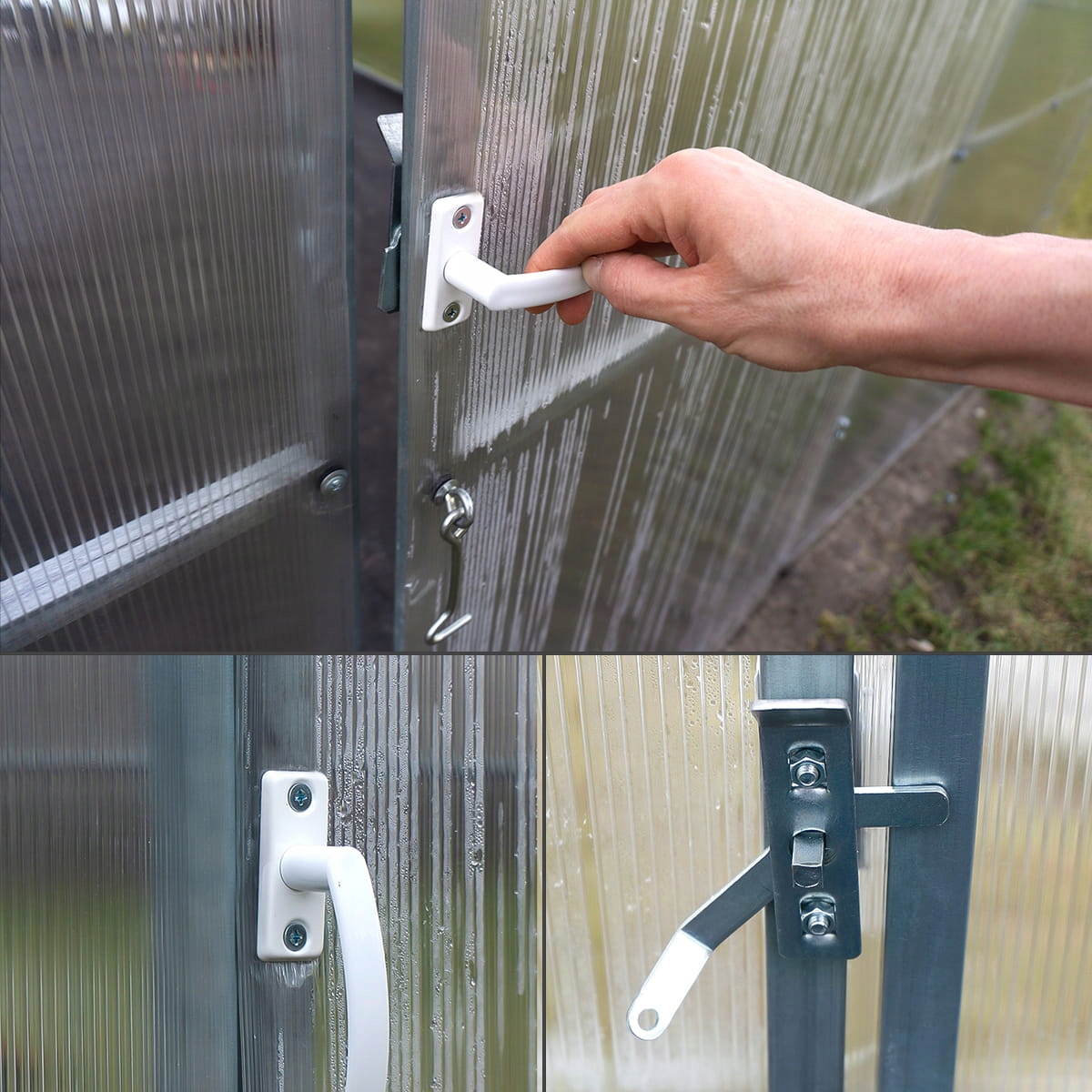 Вікна встановлюються після повного монтажу теплиці. Це не обов'язково, але ми рекомендуємо встановити додаткові вікна з автоматичним відкриванням. Це захистить ваші посіви від перегріву в літню спеку. Сильно нагрітий полікарбонат може стати крихким, що може призвести до розтріскування в зимові морози.