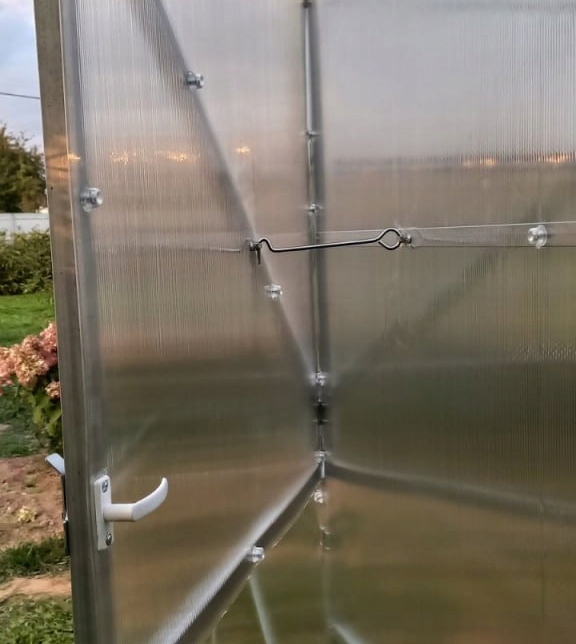 - Конструкція дверей із двох частин (верхня та нижня частини дверей відкриваються незалежно одна від одної ) забезпечує зручне використання та додає можливість додаткового провітрювання теплиці.