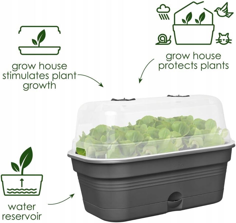 - Кришка з вентиляційним регулятором дозволяє контролювати температуру і подачу повітря, створюючи ідеальні умови для росту рослин і трав.