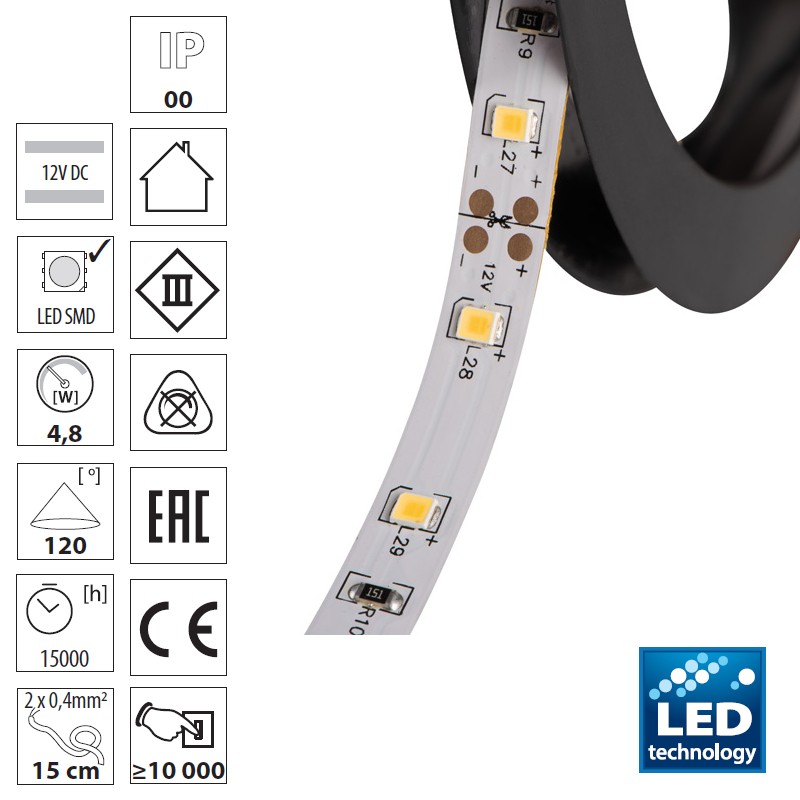 Теплий білий IP00 5M 4.8 Вт/м Kanlux світлодіодна стрічка