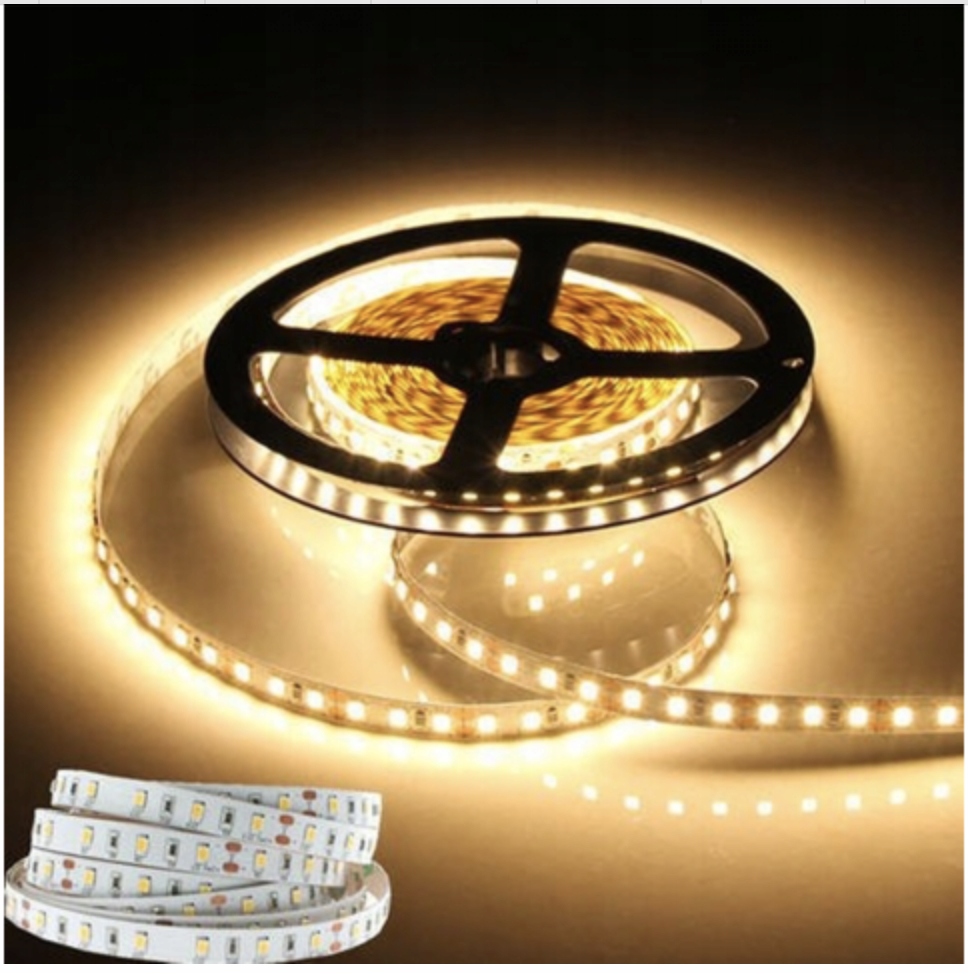 ТЕПЛО-БІЛА СВІТЛОДІОДНА СТРІЧКА, ВОДОНЕПРОХОДНИЙ ДЖЕРЕЛ ЖИВЛЕННЯ 5 М SMD СТРІЧКА 12 В