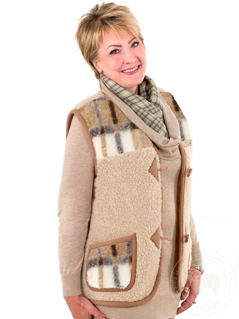 Вироби з використанням овечої вовни - це поєднання новітніх текстильних технологій з унікальним ефектом вовняного волокна. Вовна, як єдине натуральне волокно, має здатність негайно забезпечувати та підтримувати відповідний рівень тепла для всіх тканин. Гігроскопічність вовни сприяє поглинанню надлишкової вологи, а особлива структура волосся забезпечує оптимальний повітрообмін між нашим тілом і навколишнім середовищем. Відкрийте для себе надзвичайний благотворний вплив вовни, використовуючи наші продукти! Візерунки на кишенях і верхній частині жилета можуть мати різну інтенсивність і розташування.