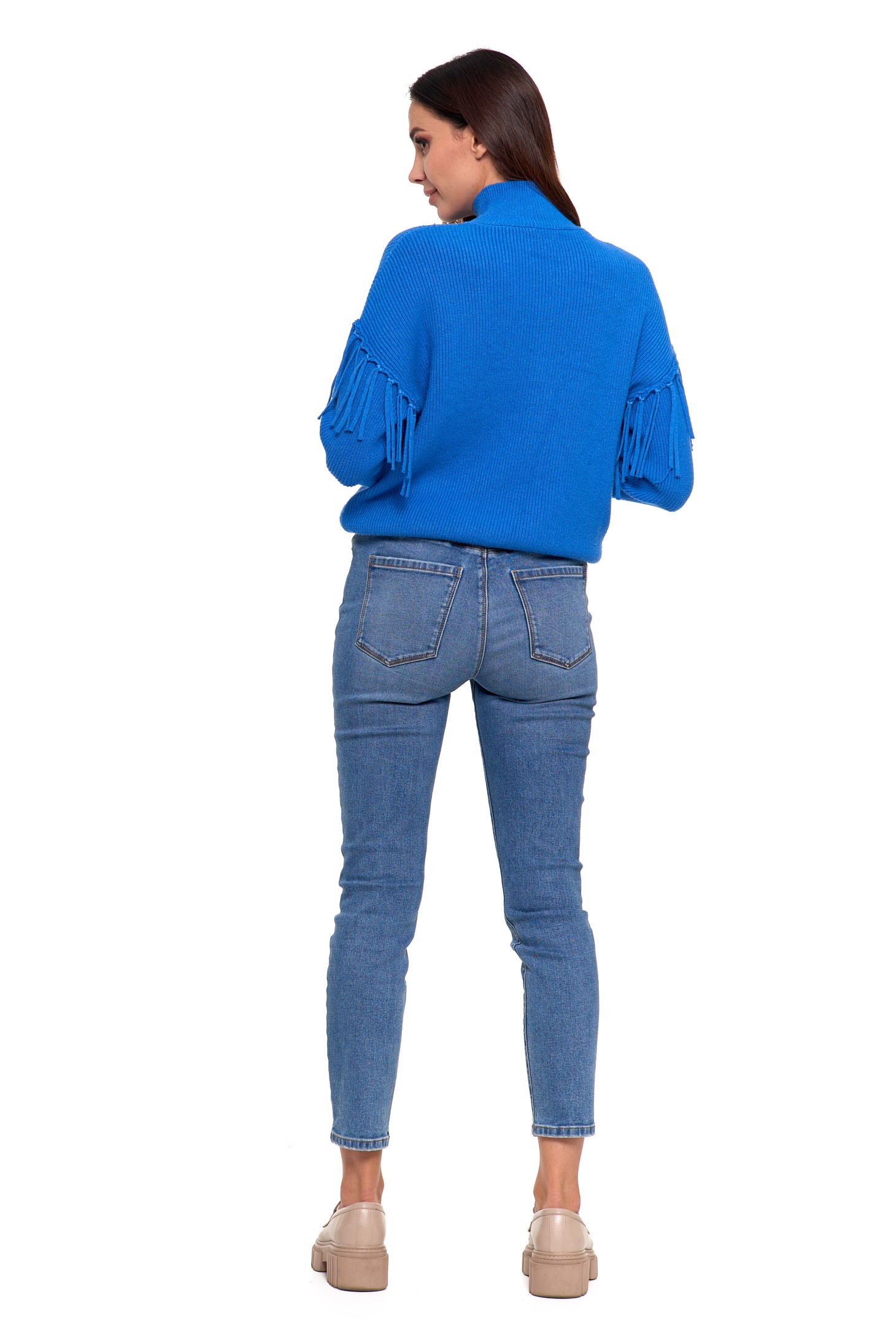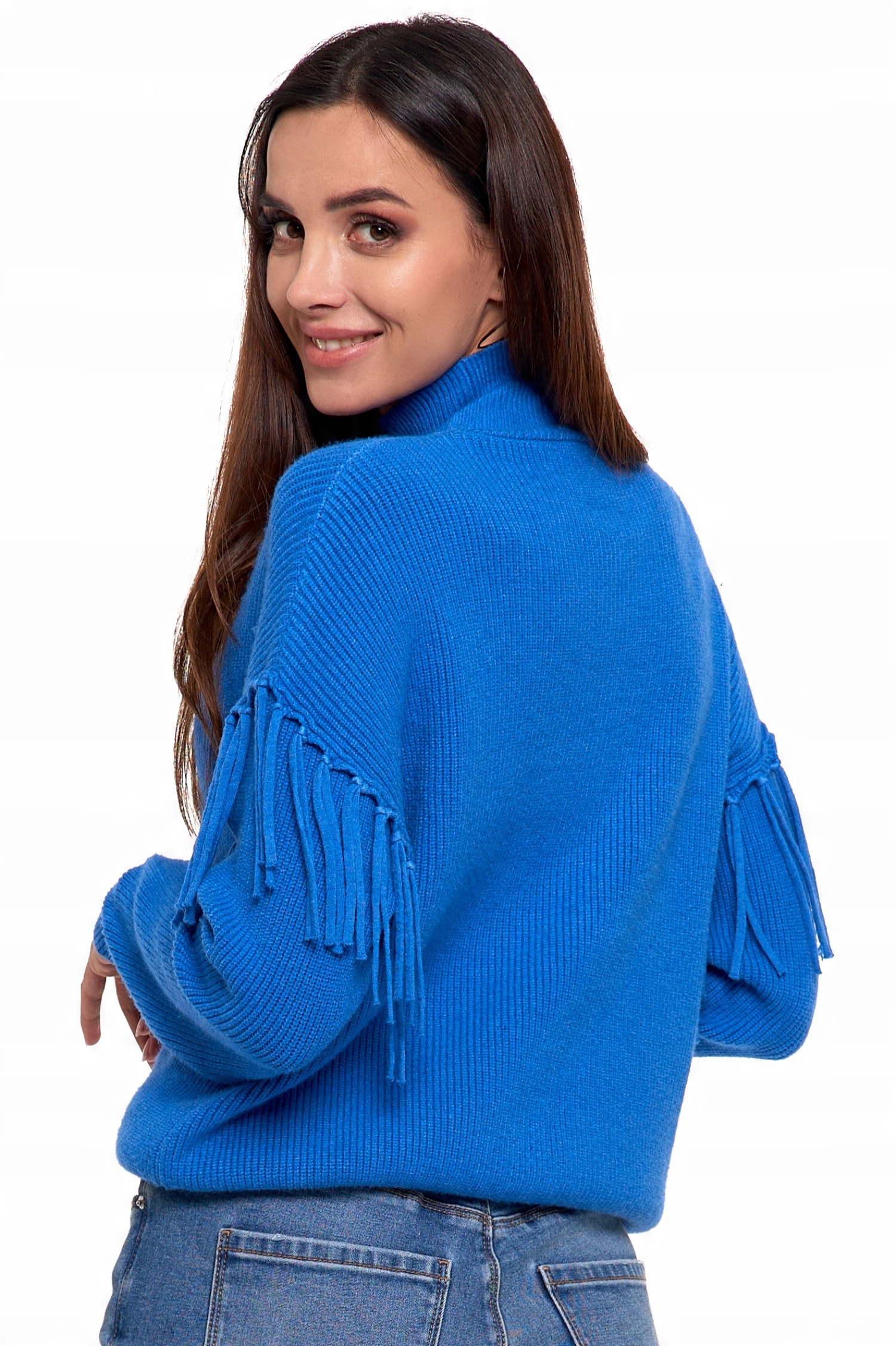 Елегантна водолазка: светр розроблено з витонченою водолазкою, яка надає йому елегантного вигляду та додає нотку розкоші вашому вбранню. Бахрома для неповторного стилю: светр прикрашений привабливою бахромою, яка надає йому оригінальності та привертає увагу. Це тонка прикраса, яка додає неповторного стилю светру. Комфорт і тепло: виготовлений з м’якого та приємного до шкіри матеріалу, светр забезпечує комфорт при носінні та ідеальну посадку. Ідеально підходить для холодних днів, коли ви хочете почуватися елегантно та тепло. Універсальний дизайн: цей светр настільки універсальний, що його можна носити як у повсякденному робочому стилі, так і в офіційних випадках, надаючи кожній ситуації унікальний характер.