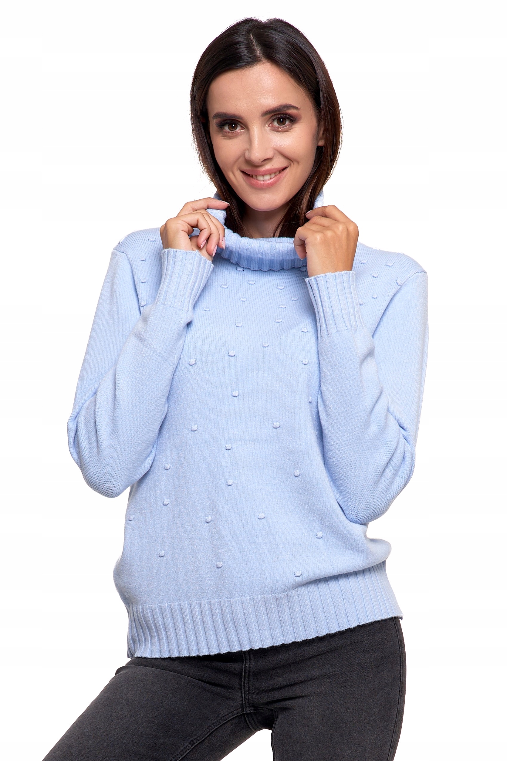 Відкрийте для себе елегантність і комфорт в одному: жіноча водолазка з віскози з ніжним візерунком спереду є суттю жіночої моди. У цьому светрі класична водолазка поєднується з сучасним дизайном, створюючи унікальний предмет гардеробу.