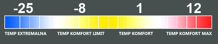 - Екстремальна температура - перевищення цього значення може спричинити ризик гіпотермії та означає умови, в яких можна вижити не більше 6 - 8 годин.