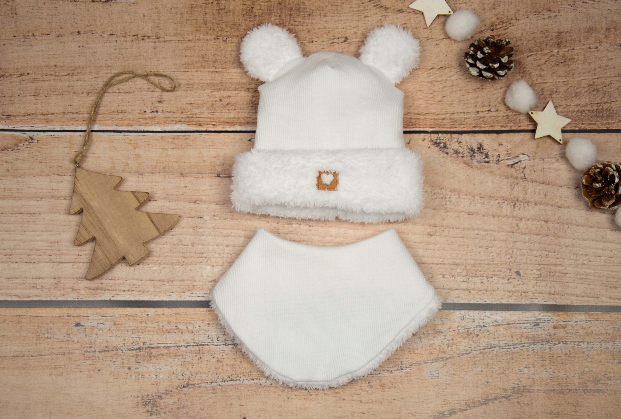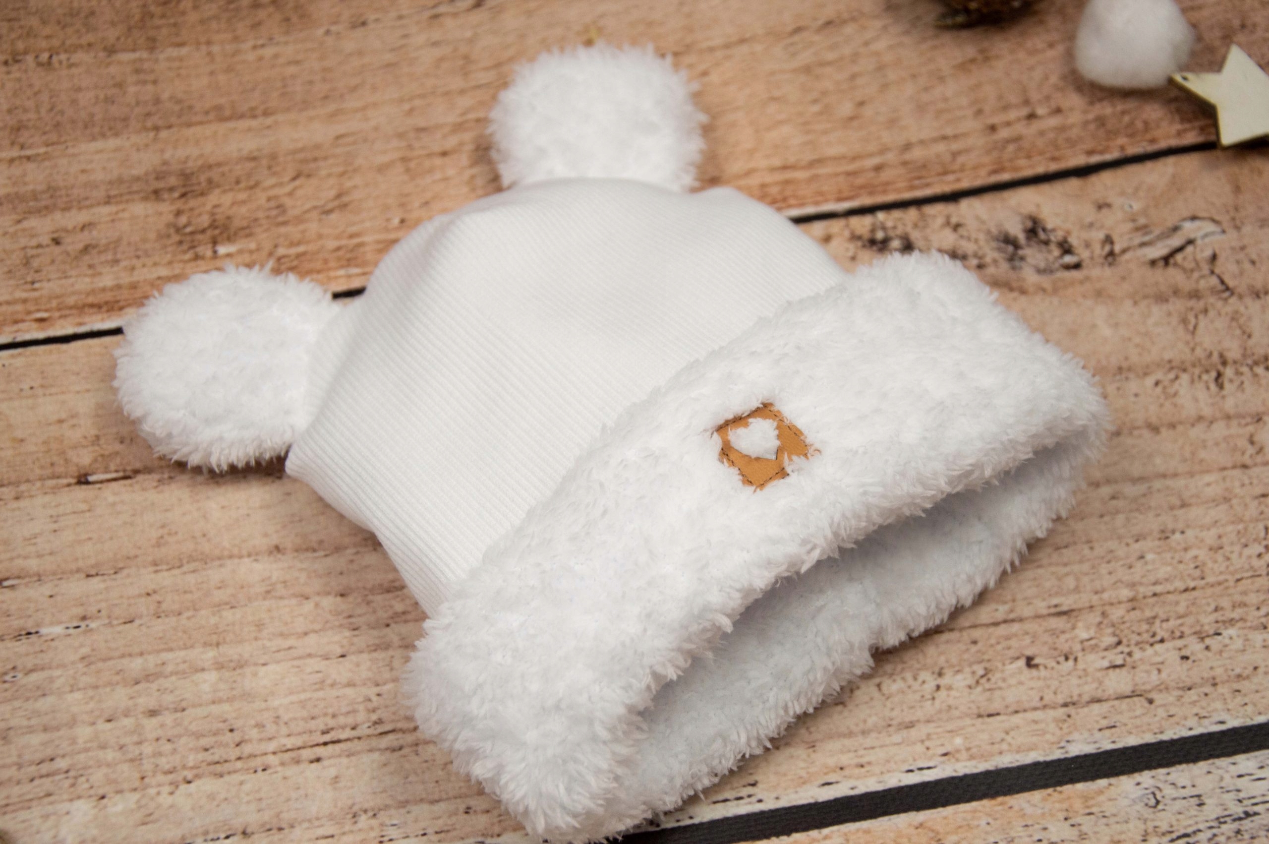 - шапочка прикрашена милими вушками та нашивкою зі шкірозамінника