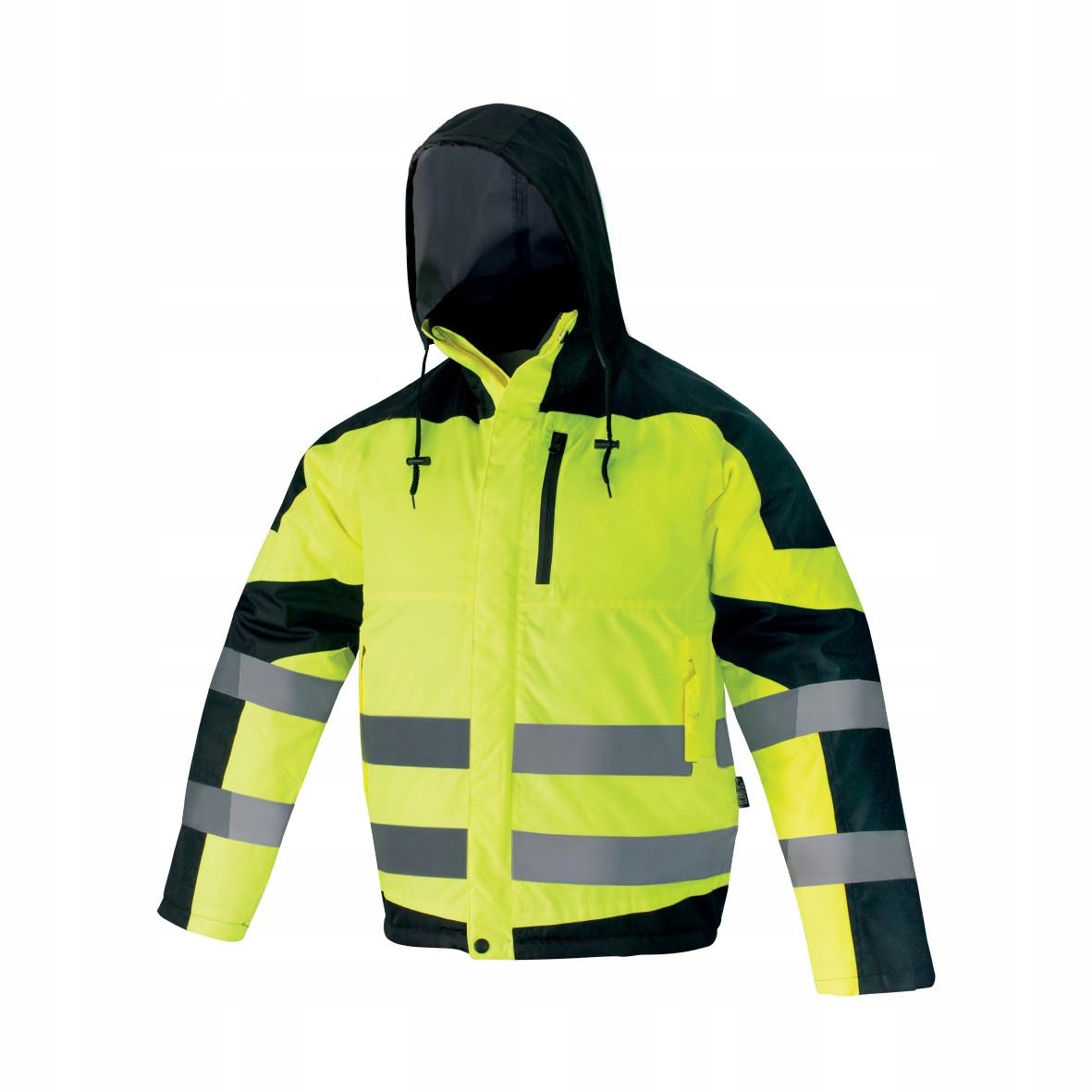 Утеплена світловідбиваюча куртка з водонепроникного поліефірного матеріалу Oxford 300D, просоченого ПУ, флуоресцентного жовтого кольору з чорними вставками. Утеплена та стьобана підкладка з поліестеру.