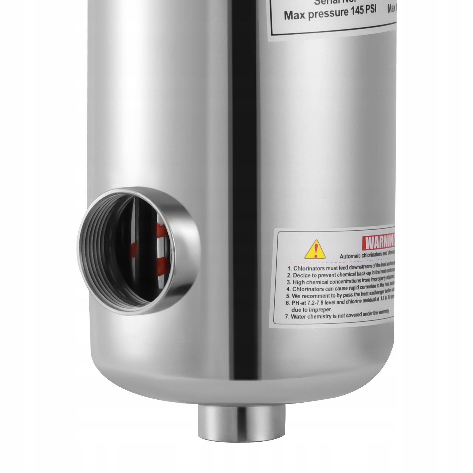 1. Будь ласка, перевірте стиль та розмір перед покупкою. Будь ласка, прочитайте інструкції та етикетки перед встановленням та використанням та приділяйте особливу увагу інструкціям безпеки, які він містить. Слід пам’ятати, що рекомендована максимальна концентрація хлориду у свіжій/чистої води нижче 140 ° F в обміннику становить 300 мг/л і повинна бути знижена зі збільшенням температури води. Перевищення рекомендованої концентрації хлориду або пряме використання хлоратора може спричинити яму з нержавіючої сталі. Тепло -обмінник титанового рекомендується для використання у високій концентрації хлориду. Слід пам’ятати, що теплообмінник завжди повинен бути встановлений у зворотному потоці і повинен бути встановлений за фільтром та пристроєм насоса. Це повинно бути допоміжним обладнанням для води в котлі та вжити звичайних заходів безпеки, щоб запобігти блокуванням повітря. Люди не можуть бути у воді, коли працює теплообмінник. Будь ласка, не кладіть 2 теплообмінників одночасно. Продукт вимагає нагрівання для належної роботи та ланцюга термостата, щоб забезпечити безперервний термостатичний ефект. Дозвольте невелику різницю кольорів, спричинену світлом фотографії та помилкою 1-3 см через ручне вимірювання та переконайтеся, що ви не проти перед тим, як розміщувати замовлення.