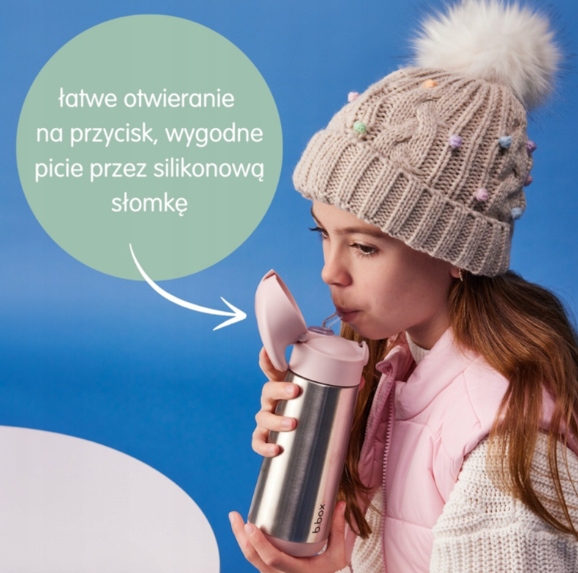 Thermobuttel з соломою B.box буде корисним для вашої дитини протягом року. Завдяки подвійним стінам з нержавіючої сталі він підтримує температуру теплих напоїв до 8 годин і холодно до 15 год*. Виготовлений з високоякісної нержавіючої сталі, це тривалий і безпечний. Дно, закінчене силіконовим барвистим кришкою, не ковзає, воно стояло не висить і не малює. Герметична кришка з легкою системою відкриття з кнопкою має інтегровану ручку полегшення передачі. Малюк легко впорається зі своїм отвором і закриттям. гнучка делікатна солома легко ховається під кришкою.