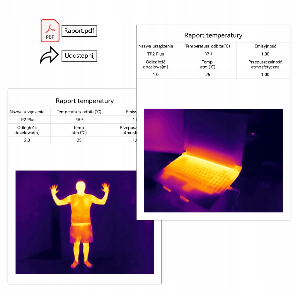 - B: Можливість аналізу Попередні вимірювання даних в режимі офлайн. Фотографії з теплової камери Зберігають ряд даних, які ви можете прочитати на більш пізньому етапі, наприклад. Перевіряючи значення температури в певній точці фотографії.