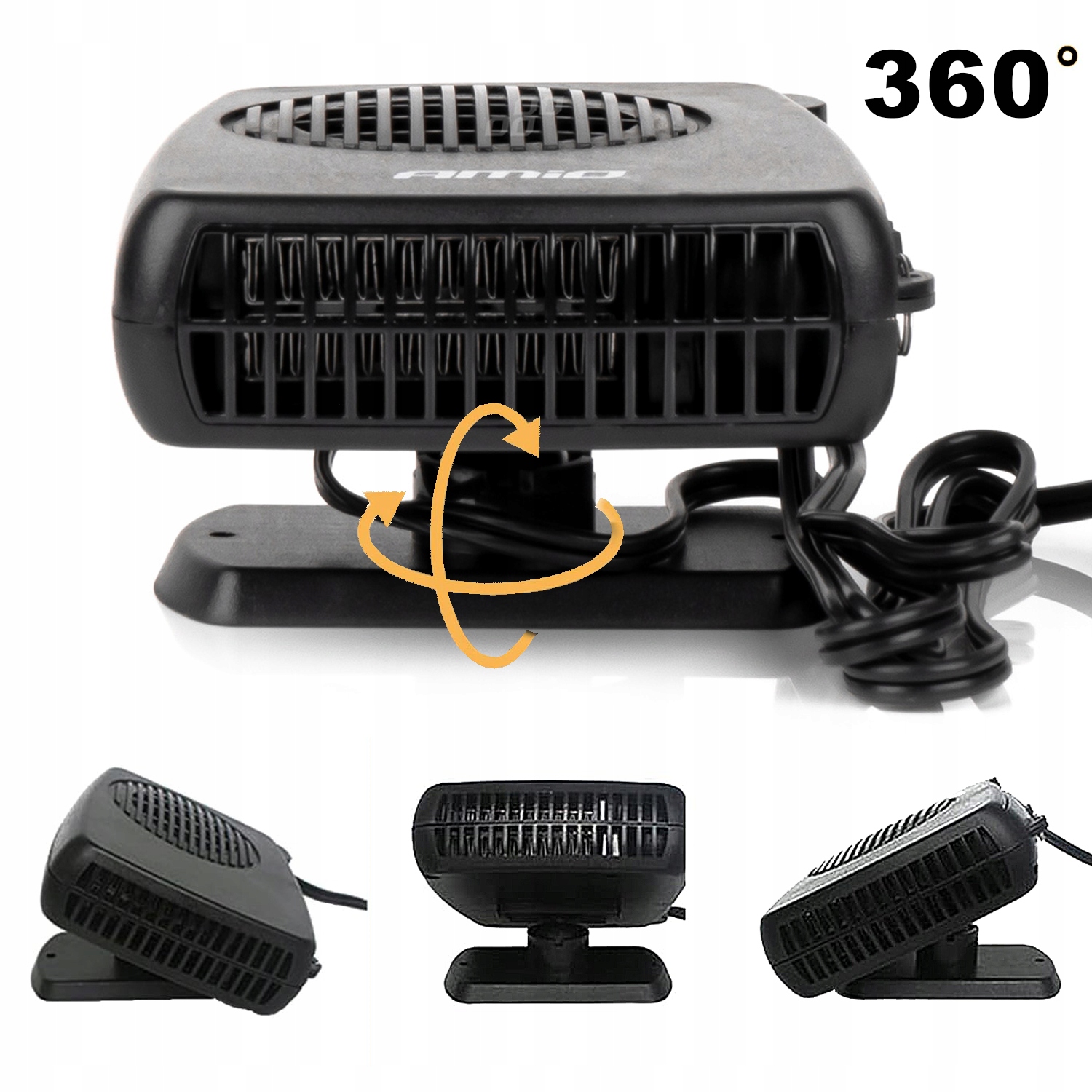 Обігрівач живиться 12 В від гнізда прикурювача автомобіля. Нагрівач можна регулювати вгору/вниз і повертати на 360°.
